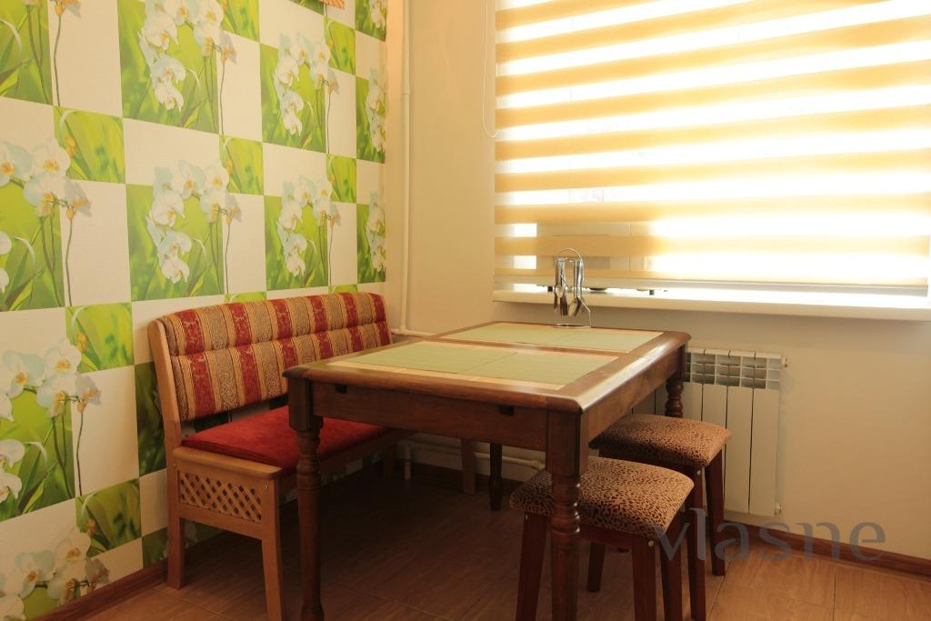 2 bedroom apartment, Zheltoksan (ex. The World), yr. st. Tole (ex. Komsomolskaya), $ 80 / day (tg / day), internet access (WiFi), 3 beds, renovation, 2 (3), brick, pl. Society. = 51 sq. m., renovated, c / a toilet, shower, plastic windows, laminate flooring, kitchen ,, videophone, fully furnished (new furniture), new underwear, dressing room, all appliances (washing machine, plasma TV, refrigerator, microwave oven, etc.