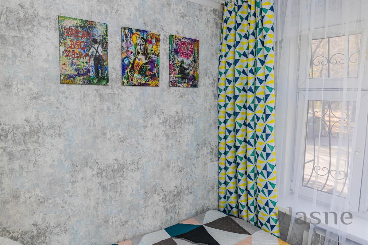 Excellent location: Within walking distance of the Center for Perinatology and Pediatric Cardiac Surgery, Almaty Oncology Center, Republican Blood Center, Institute of Family Medicine, Center for Neurology and Rehabilitation, Dostarmed Clinic, Sana Medical Center, Clinic No. 17. 5 min walk to the Persona Human Reproduction Center. 10 minutes walk from Atakent (VDNKh), Botanical Garden. There is free street parking. Convenient transport interchange, stop 2 minutes walk, transport to all directions of the city. A 5-minute drive from the giant MEGA entertainment center, the President's Park, the Bolshaya Almatinka River, Esentai Mall, VILLA Boutiques & Restaurants. Convenient access to the high-mountain skating rink Medeo, Chimbulak, Kok-Tyube. On the other side is the famous flea market, Hawaii water park. Rules Standard check-in time is after 14:00, check-out time is before 12:00. Be sure to have your original ID with you. Refundable deposit in the amount of one day. We DO NOT SMOKE or make noise after 22:00!!! When staying with animals: - an additional fee of 5000 tenge per day is charged - the size of the animal is no more than 30 cm - no more than one animal is allowed “YourHouse” - Your home away from home. More than 40 apartments for daily rent in Almaty from the owners. ​A studio is cheaper than an apartment, more comfortable than a hotel. Book now!