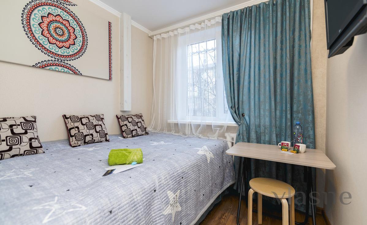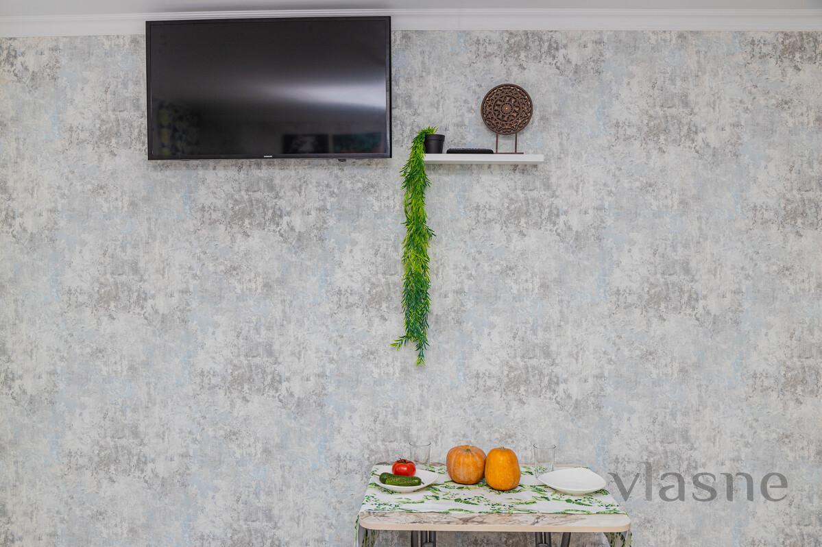 Studio is a room with a kitchenette and its own bathroom. Budget option with hotel service for a stylish, cozy, well-thought-out studio for two! The studio has everything for a comfortable stay for 2 people: area 10 sq.m - clean, fresh bed linen and towels - double bed - fast and stable wi-fi, TV - kitchen area with household appliances and utensils - bathroom with shiny fixtures - ironing board, iron, hair dryer, washing machine - security - metal entrance door - full package of travel documents with a guarantee that your accountant will accept everything Only 4 studios on the floor.