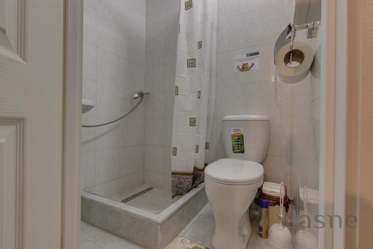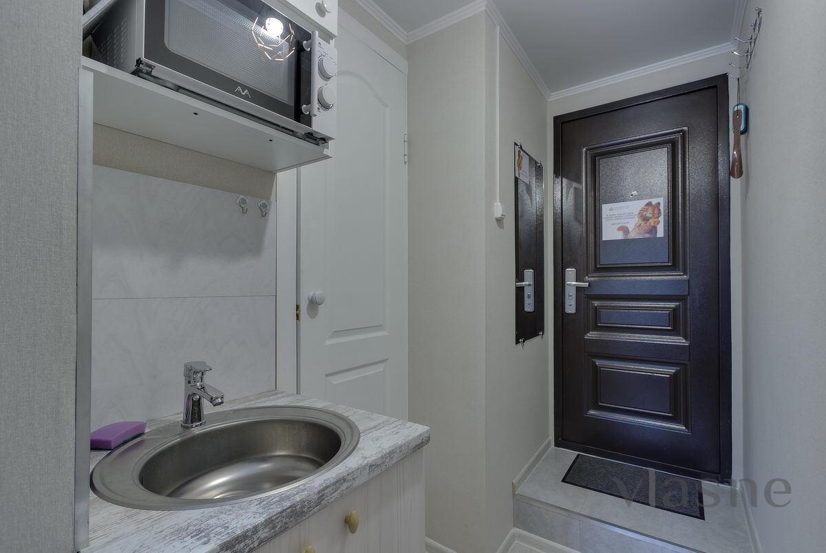 Studio is a room with a kitchenette and its own bathroom. Budget option with hotel service for a stylish, cozy, well-thought-out studio for two! The studio has everything for a comfortable stay for 2 people: - area 10 sq.m - clean, fresh bed linen and towels - double bed - fast and stable wi-fi, TV - kitchen area with household appliances and utensils - bathroom with shiny plumbing - ironing board, iron, hair dryer, washing machine - security - metal entrance door - a full package of travel documents with a guarantee that your accountant will accept everything! ​Only 4 studios per floor.