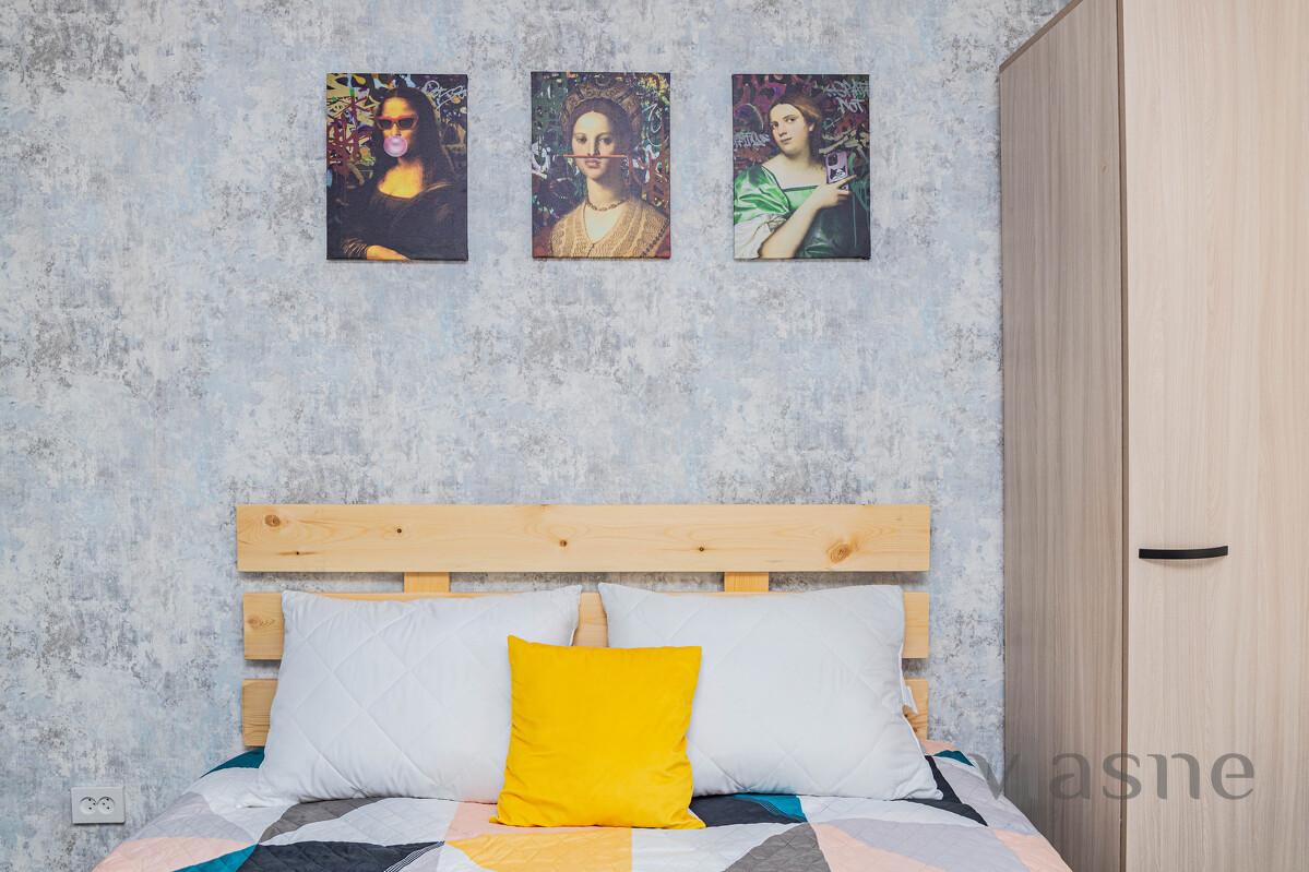 Studio is a room with a kitchenette and its own bathroom. Hotel service in a stylish, cozy, well-thought-out studio for two! Perfect for business travelers, city guests, couples. The studio has everything for a comfortable stay for 2 people: - area 15 sq.m - clean, fresh bed linen and towels - double bed - fast and stable wi-fi, TV - kitchen area with household appliances and utensils - bathroom with shiny plumbing - ironing board, iron, hair dryer, washing machine - security - metal entrance door - a full package of travel documents with a guarantee that your accountant will accept everything! ​Only 4 studios per floor.