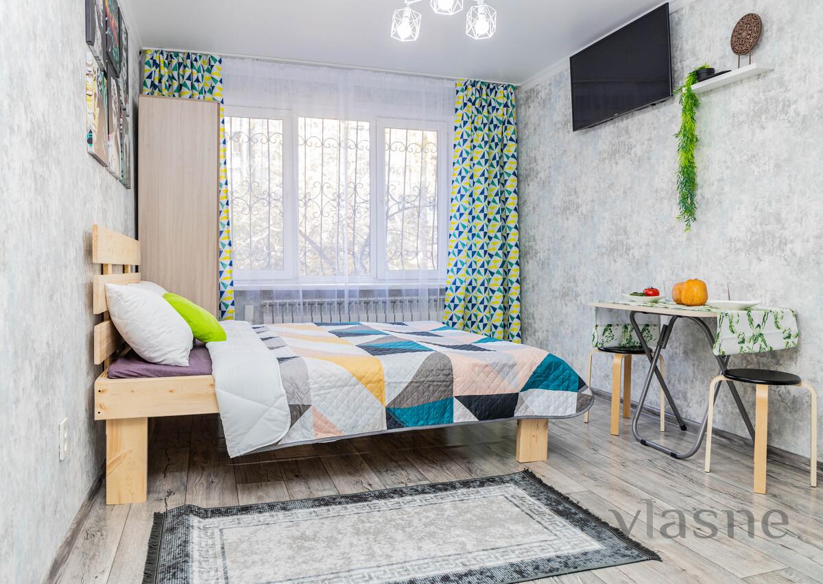 unit with shiny plumbing - ironing board, iron, hair dryer, washing machine - security - metal front door - full package of travel documents with a guarantee that your accountant will accept everything! Only 4 studios per floor. Excellent location: Within walking distance of the Center for Perinatology and Pediatric Cardiac Surgery, Almaty Oncology Center, Republican Blood Center, Institute of Family Medicine, Center for Neurology and Rehabilitation, Dostarmed Clinic, Sana Medical Center, Clinic No. 17, Persona Human Reproduction Center. 10 minutes walk from Atakent (VDNKh), Botanical Garden. There is free street parking. Convenient transport interchange, stop 2 minutes walk, transport to all directions of the city. A 5-minute drive from the giant MEGA entertainment center, the President's Park, the Bolshaya Almatinka River, Esentai Mall, VILLA Boutiques & Restaurants. Convenient access to the high-mountain skating rink Medeo, Chimbulak, Kok-Tyube. On the other side is the famous flea market, Hawaii water park. Rules Standard check-in time is after 14:00, check-out time is before 12:00. Be sure to have your original ID with you. Refundable deposit in the amount of one day. We DO NOT SMOKE or make noise after 22:00!!! When staying with animals: - an additional fee of 5000 tenge per day is charged - the size of the animal is no more than 30 cm - no more than one animal is allowed “YourHouse” - Your home away from home. More than 40 apartments for daily rent in Almaty from the owners. A studio is cheaper than an apartment, more comfortable than a hotel. Book now!
