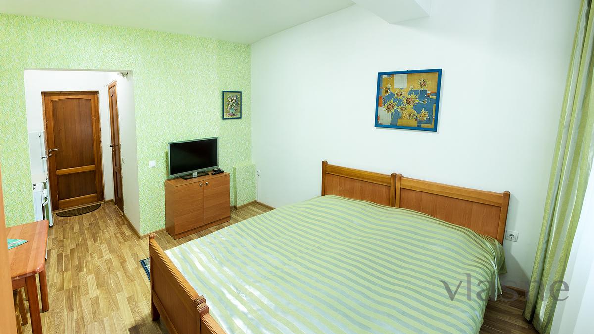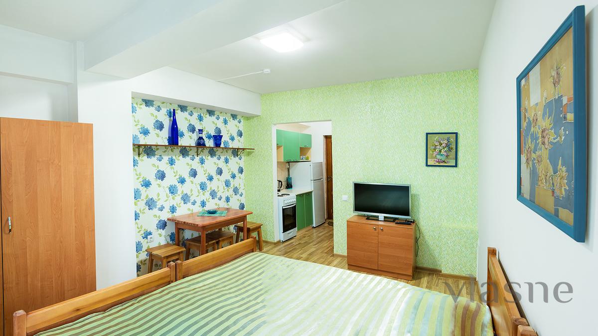 Spacious studio apartment in a new, modern residential complex. The windows overlook a quiet courtyard. In the living room 2 beds: two wide bed lorry. Comfortable, spacious wardrobe. And a seating area with a dining group. The apartment has cable TV, high speed internet, iron and ironing board, hair dryer, electric kettle, microwave, refrigerator and utensils.