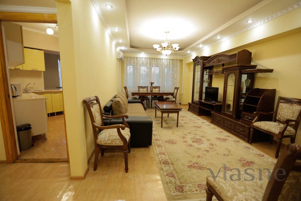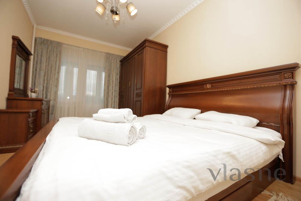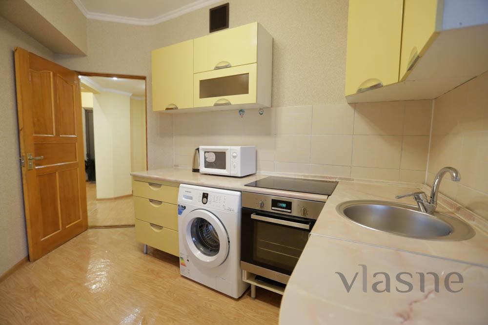 In walking distance are many banks, restaurants, cafes, beauty salons, grocery stores. The apartment has everything for a comfortable stay: all appliances, cab. TV, utensils for reception and cooking, refrigerator, microwave, washing machine, hair dryer, Wi-Fi. Very clean and well appointed. Our apartments are cleaned by professionals, so we guarantee the cleanliness! Bed linen and towels are perfectly white, disposable hygienic supplies (toothpaste, shampoo, soap, etc.) are provided. We do not rent for the night, for hours and for parties.