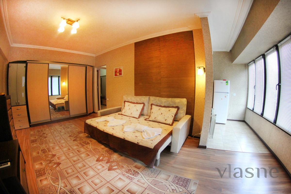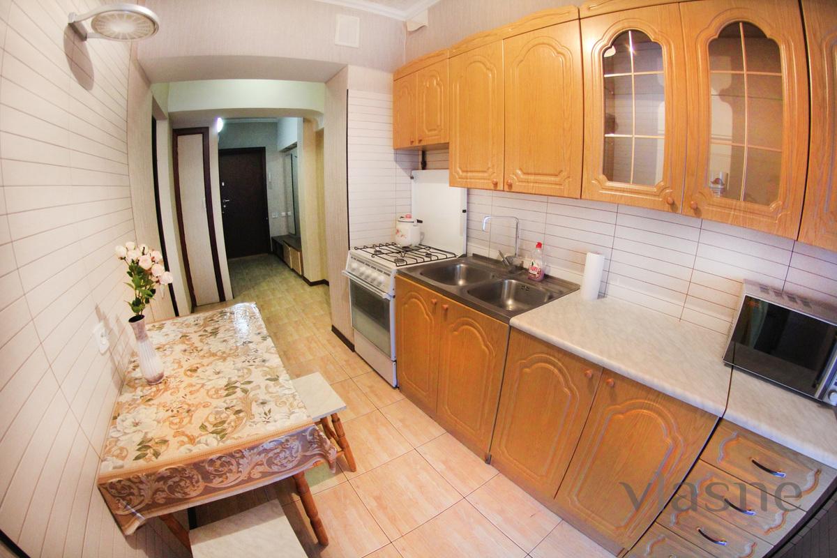 Nearby there are picturesque squares with fountains and greenery. Shops, restaurants and cafes are within walking distance. The apartment has everything for a comfortable stay: all appliances, cab. TV, utensils for reception and cooking, refrigerator, microwave, washing machine, hair dryer, Wi-Fi. Very clean and well appointed. Our apartments are cleaned by professionals, so we guarantee the cleanliness! Bed linen and towels are perfectly white, disposable hygienic supplies (toothpaste, shampoo, soap, etc.) are provided. We do not rent for the night, for hours and for parties. You will receive high service and recommend our apartments to your relatives and friends! Come, we are waiting for you!