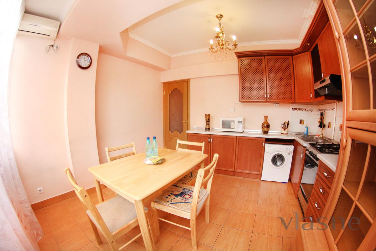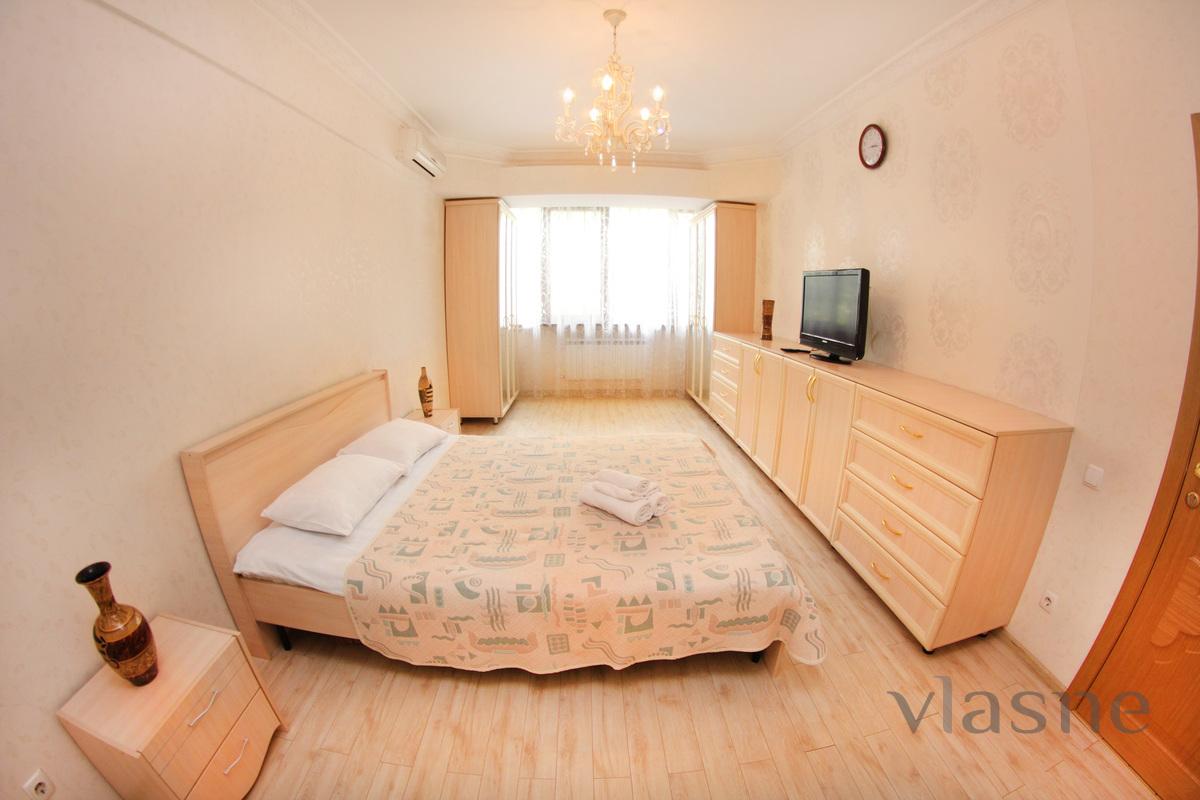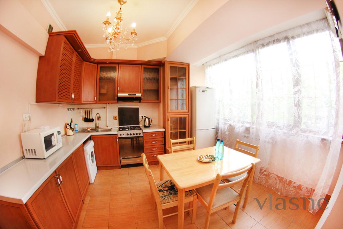 Nearby there are picturesque squares with fountains and greenery. Shops, restaurants and cafes are within walking distance. The apartment has everything for a comfortable stay: all appliances, cab. TV, utensils for reception and cooking, refrigerator, microwave, washing machine, hair dryer, Wi-Fi. Very clean and well appointed. Our apartments are cleaned by professionals, so we guarantee the cleanliness! Bed linen and towels are perfectly white, disposable hygienic supplies (toothpaste, shampoo, soap, etc.) are provided. We do not rent for the night, for hours and for parties. You will receive high service and recommend our apartments to your relatives and friends! Come, we are waiting for you! We are glad to give comfort and comfort to our guests!
