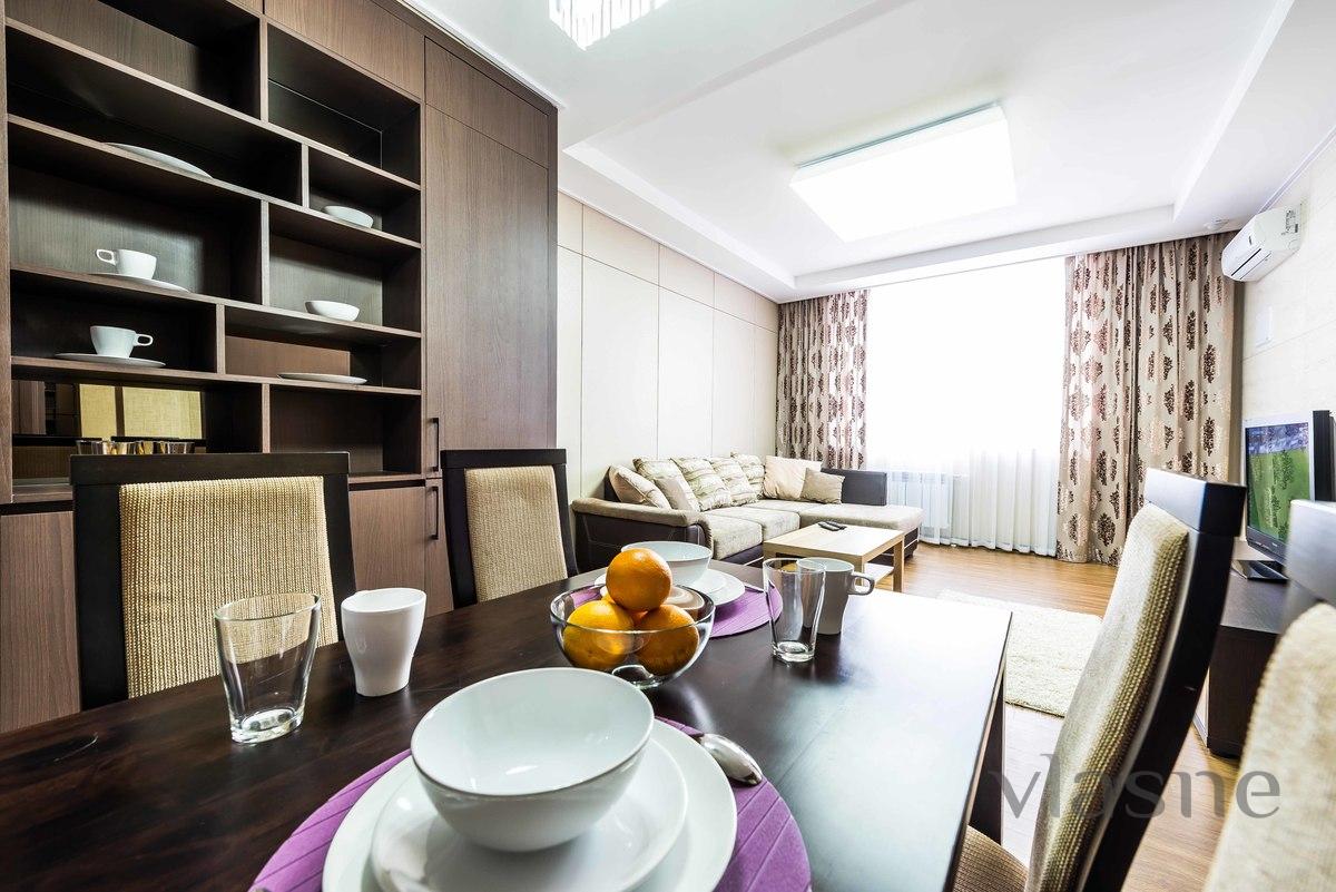 The apartments are located in the complex Highvill unit G-1, a view of the beautiful buildings of the city of Astana, within walking distance of the Palace of Peace and Accord Palace Shabyt creativity, Independence Palace, the National Museum of the Republic of Kazakhstan, the Mosque Hazrat Sultan, the US Embassy.