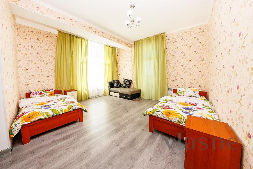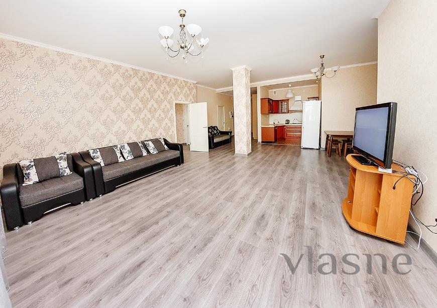 Spacious 3 bedroom apartment on the Left Bank near the medical centers. 2 bathrooms with shower, sleeps 4 for 6-8 people. In walking distance there are major medical centers: the Republican scientific center of emergency medical care, the National Research Center of Oncology and Transplantation, Center of extracorporeal blood correction, the National Science Cardiac Surgery Center, National Children's Rehabilitation Center, National Center for Neurosurgery Research and Production Center Transfusion, School of Medicine, National Research center of motherhood and childhood, the Republican diagnostic center also sports a number of Coop eniya: Barys Arena Astana Arena, Republican cycle track "Sary-Arka" Ice Palace "Alau", the Palace of Martial Arts.