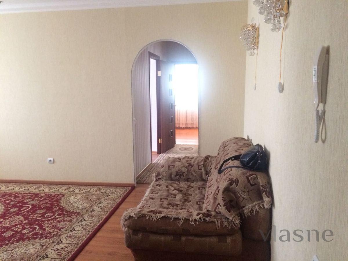 Rent 3-room apartment in the LCD "UYUT" on the left bank, in the administrative center of Astana, by the day, there is all the furniture and appliances. Next to the Baiterek monument, Keruen shopping and entertainment center, Talan Towers business center, The Ritz-Carlton hotel, Abu Dhabi Plaza, Beijing Palace hotel, Moskva business center, St.
