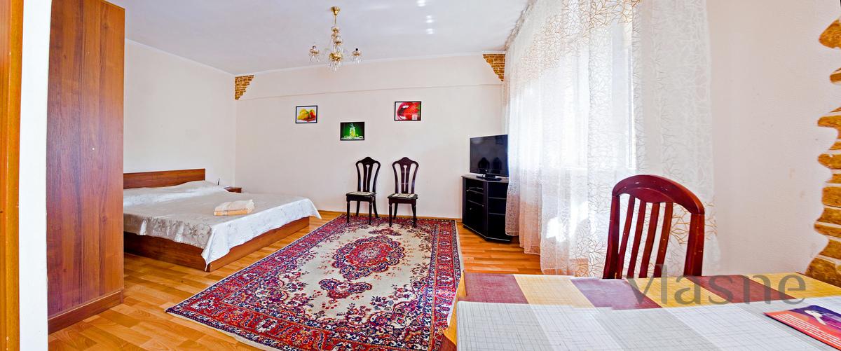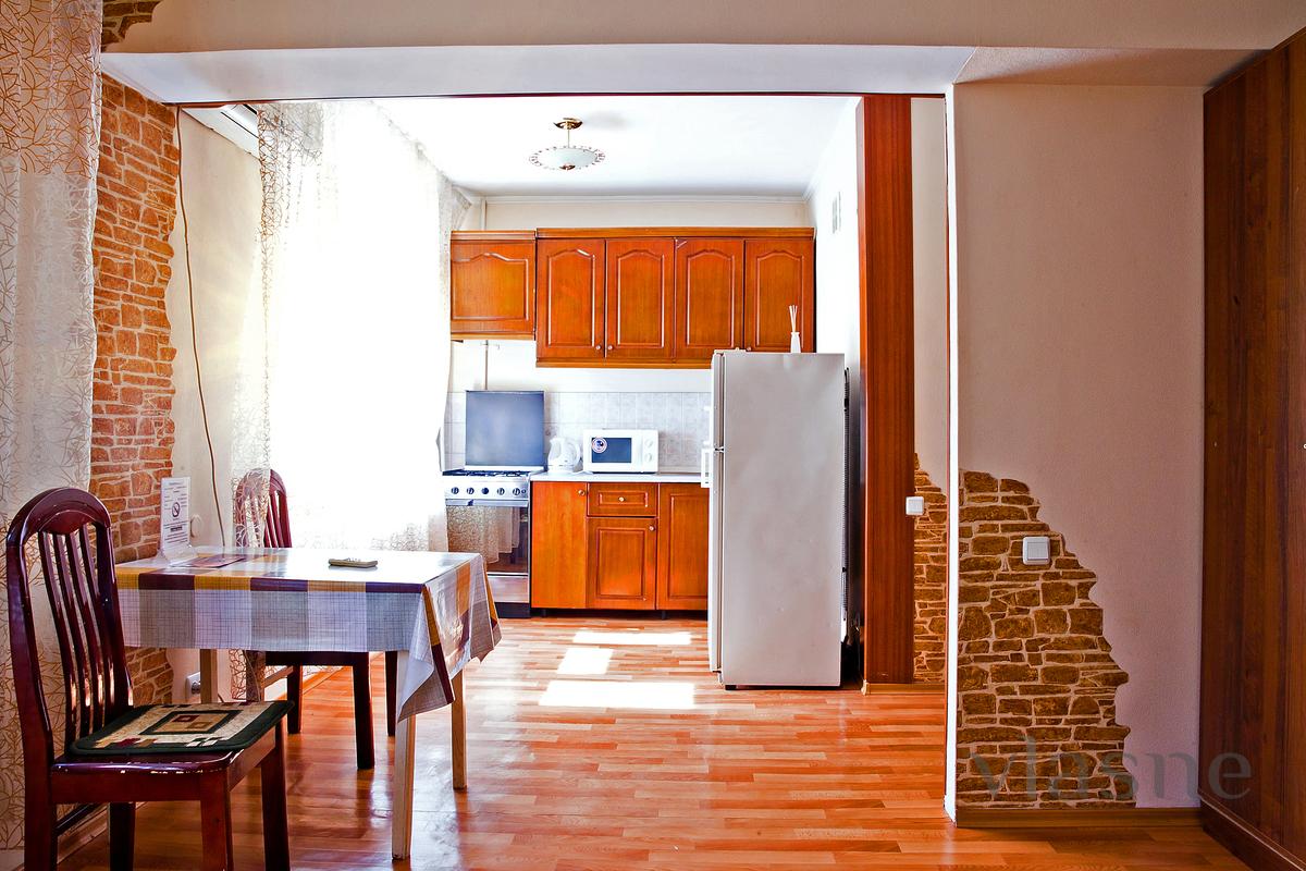 Furnished in classic style. Big bed allows to take a rest. There is always fresh sheets and bath towels in the apartment. Kitchen is equipped with all necessary.