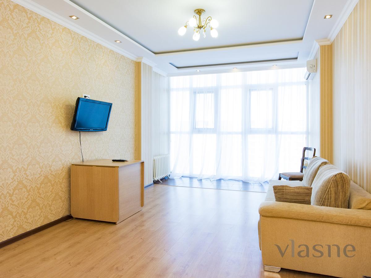 Warm apartment with panoramic windows and stunning views of the Khan Shatyr and Nurzhol Boulevard. The apartment has two bathrooms, a large spacious living room, a bedroom with a writing area. For a comfortable stay in the apartment has bedding, kitchenware, home appliances, wireless internet access.