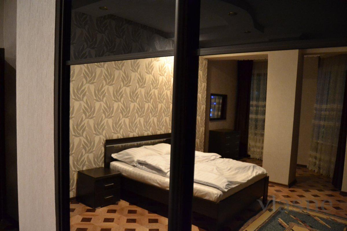 Luxury apartments on the top floor in the LCD Nursaya, with stunning views from the bedroom window. A short distance from the exhibition center feed, KazMunaiGaz, House of Ministries, KTZ. We offer apartments to accommodate 4-6 people, arrived in the capital for business or tourists. Apartment with hotel services - bedding, bathrobes, disposable personal hygiene products, slippers.