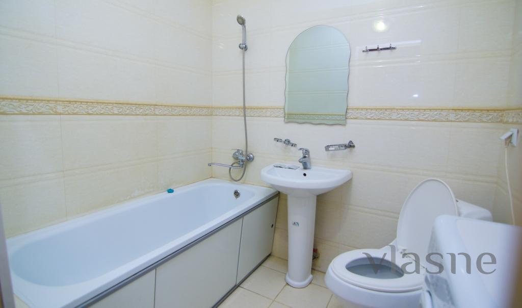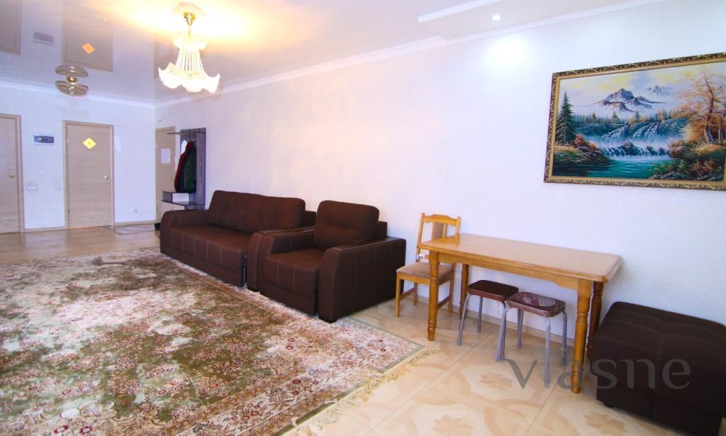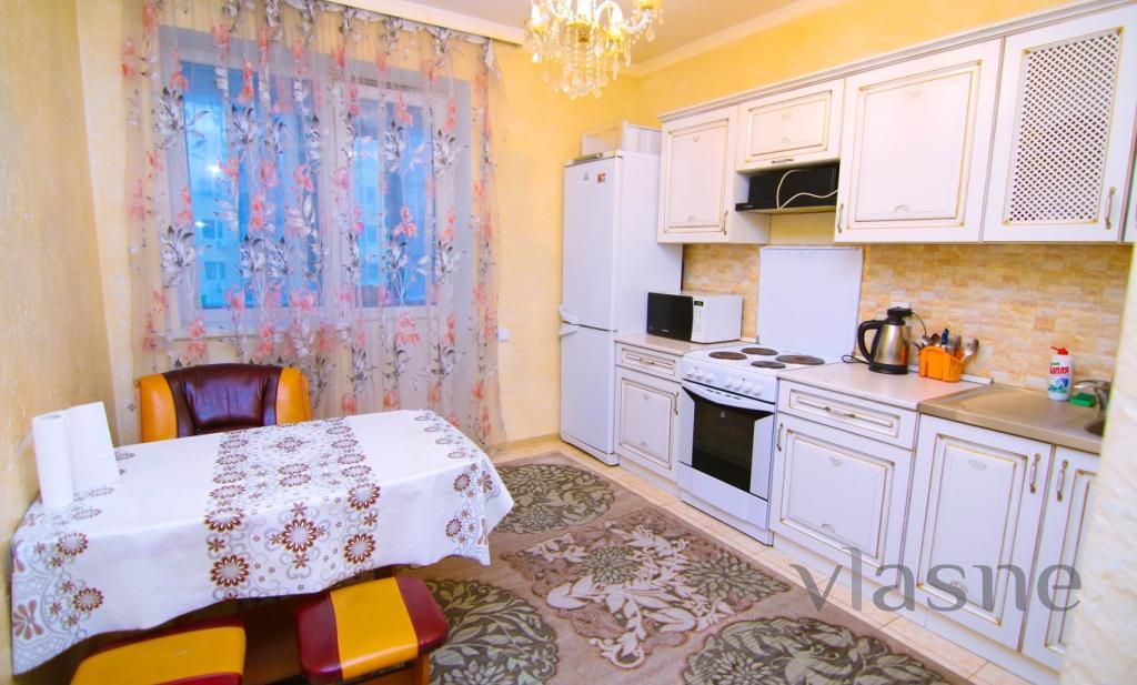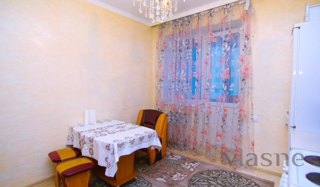 The interior is made in calm colors with funny paintings on the walls, and the windows offer a magnificent panorama of the shopping and entertainment complex Khan Shatyr, the Ministry of Transport and Communications, Baiterek. Located in the heart of the city in a new and comfortable LCD. In the residential complex "Azure Quarter" without leaving the street there is an opportunity to purchase the necessary products in a mini market, as well as a pharmacy, a bakery, a cookery, an air ticket office, branded cosmetics and clothing stores in the hall of the complex. In the immediate vicinity is the Expo Center "Korme". For the convenience of guests, there is a 24-hour transfer from the airport and in the opposite direction. A new and safe playground is also available to our guests. In the courtyard of the house are modernized sports equipment for maintaining physical fitness.