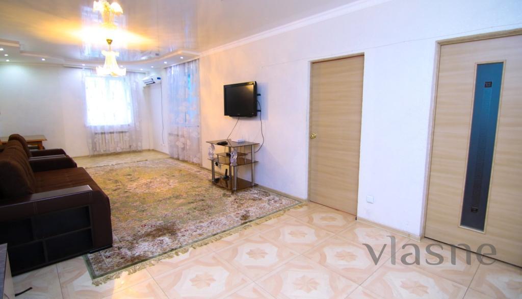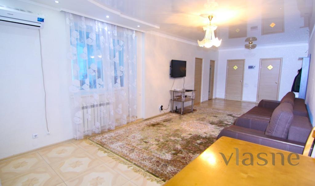 Apartments The deluxe class with a bedroom, a large living room, a kitchen area are decorated in a modern style, for guests who appreciate impeccable taste, an atmosphere of home comfort and high quality of service. At your service apartments with hotel service - ironed bedding, towels, bath kits. The apartment has everything you need for your comfortable stay - home appliances, furniture, Wi-Fi, cable TV, air conditioning, shampoo, shower gel, hair dryer.