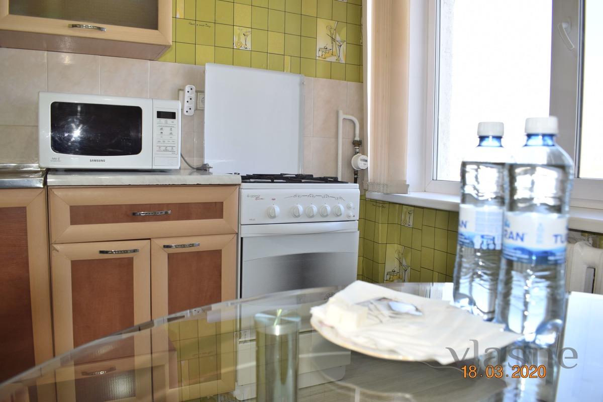 Sleeps 4. The apartment has everything for a comfortable stay: household appliances, 2 double bed, sofa bed, stove and all the dishes necessary for cooking and eating, iron, ironing board, hair dryer, high-speed internet wi fi, TV , clean linens and towels. Very clean and comfortable. Convenient transport accessibility, (near a stop), free parking. Grocery stores, cafes, restaurants, banks. We provide all business documents to business travelers. Check-in by 14.00, check-out before 12.00, exceptions are negotiated.