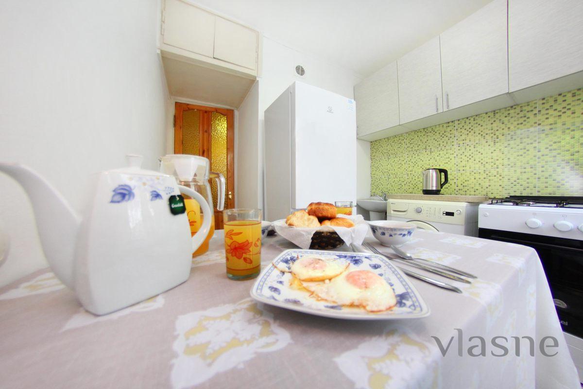 В квартире есть все необходимое для комфортного проживания: smart tv, утюг, гладильная доска, сушилка, вся бытовая техника и посуда, высокоскоростной wi-fi, двухспальная кровать и раздвижной диван. Всегда свежая и мягкая постель позволит вам выспаться и набраться сил.