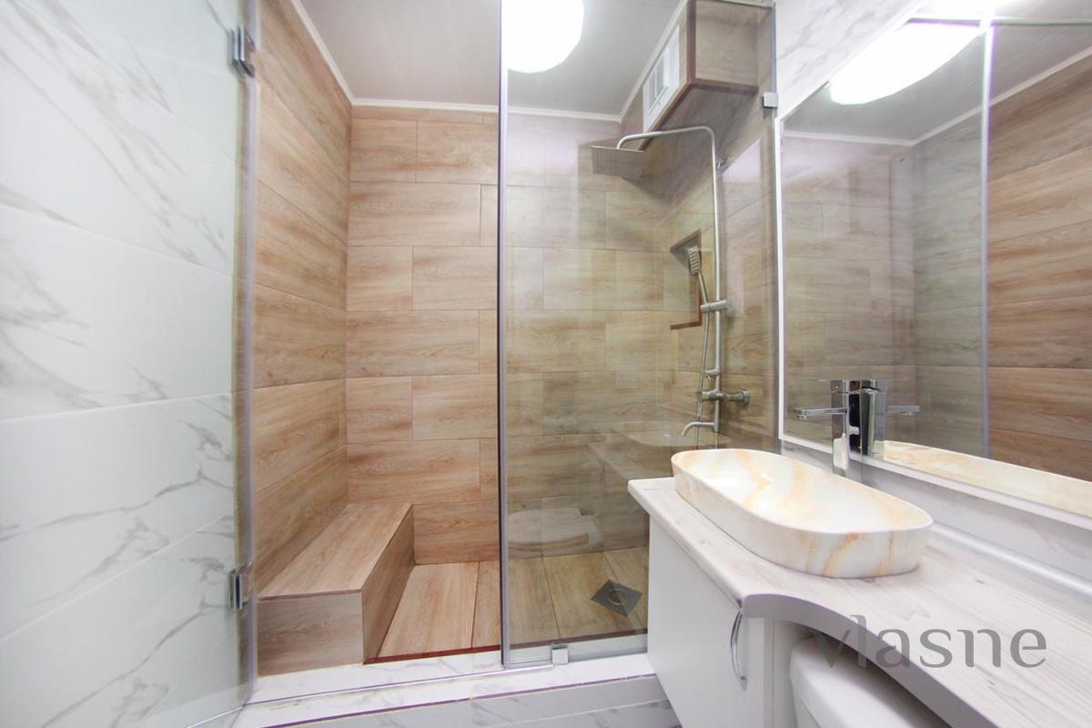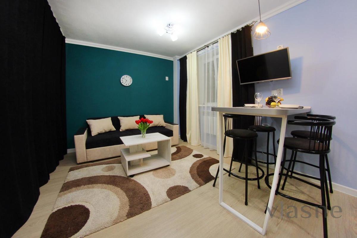 Дизайнерская светлая квартира Люкс в центре города. Только после ремонта, свежая мебель, новая техника. Большая кровать с мягким матрасом от IKEA заправлена качественным свежим бельем. Спальная зона отделена занавеской, и отдельная зона с мягким диваном, где вы можете провести уютный вечер и посмотреть хороший фильм на большом экране со Smart TV +более 95 каналов на ваш выбор.