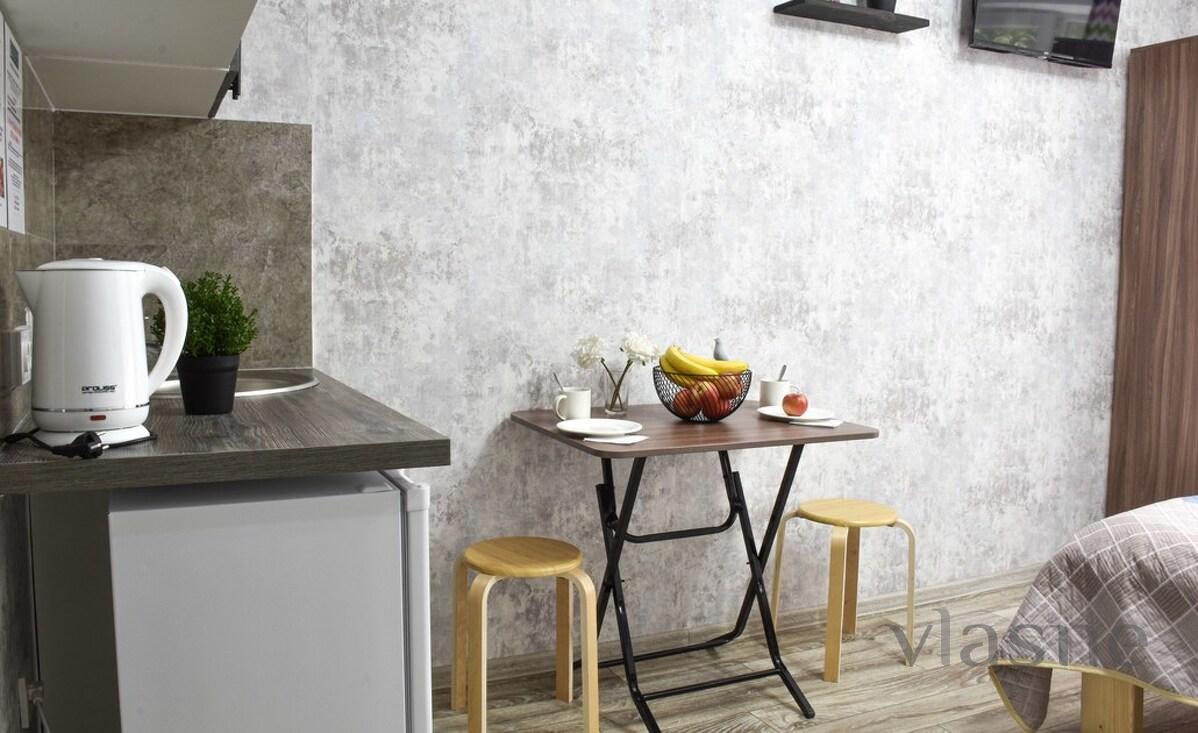 Студия – комната с мини-кухней и собственным санузлом. Гостиничный сервис в двухместной стильной, уютной, продуманной до мелочей студии!