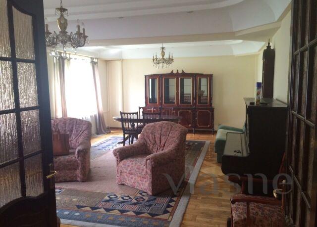 просторная квартира с залом 40кв.и, холл, 2 санузла, две спальни, кухня, балкон. стоянка для машины непосредственно под окнами квартиры. двор охраняется, расположена в самом центре города в непосредственной близости от супермаркета, ресторанов, кинотеатра И т д