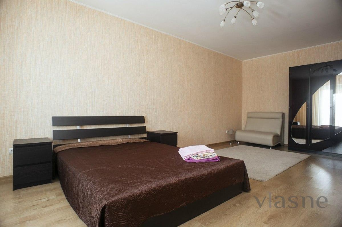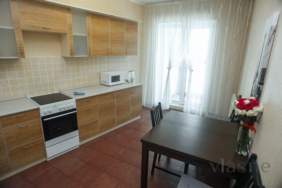 Чистая, комфортная, с интернетом (вай-фай), полным набором техники, мебели, кухонной утвари и посуды. В квартире есть стиральная машина-автомат, холодильник, микроволновка, утюг, фен, телевизор. Санузел раздельный, в ванной — душевая кабина. Предоставляется постельное бельё. По запросу возможна уборка. Курение допустимо в специально отведённом месте.