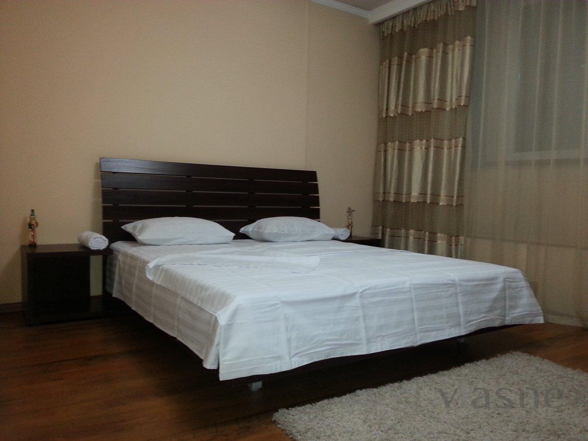 д.), удобная транспортная развязка, позволяющая легко добраться в любую часть города. Спальных мест - 3 (2+1). Чистое постельное бельё, полотенца, фен, утюг, посуда, чай, кофе, вода, всё необходимое для комфортного пребывания в квартире! Цены: 1 сутки тг./сутки; 2 суток тг./сутки; от 3 до 6 суток тг./сутки; более 7 суток тг./сутки. При заселении обязательно вносится ДЕПОЗИТ тг, который возвращается менеджером при выезде после осмотра квартиры. При длительном заселении мы предоставляем бесплатную уборку и смену белья 1 раз в семь дней. Курение и проживание с домашними животными в квартире строго запрещено! Квартира не сдается по часам, не сдается для проведения вечеринок! Для серьезных гостей южной столицы! При длительном заселении, по желанию, предоставляем трансфер с аэропорта. Вам понравится теплота нашего обслуживания!