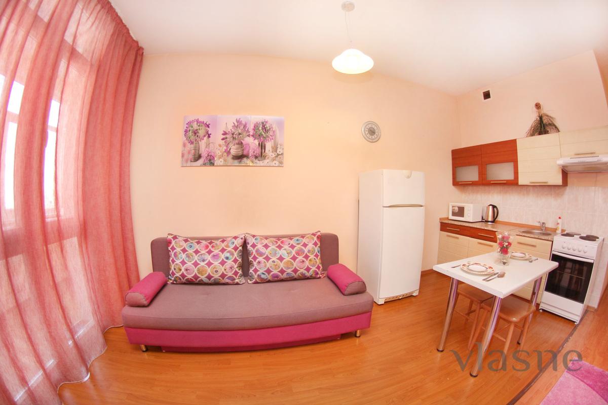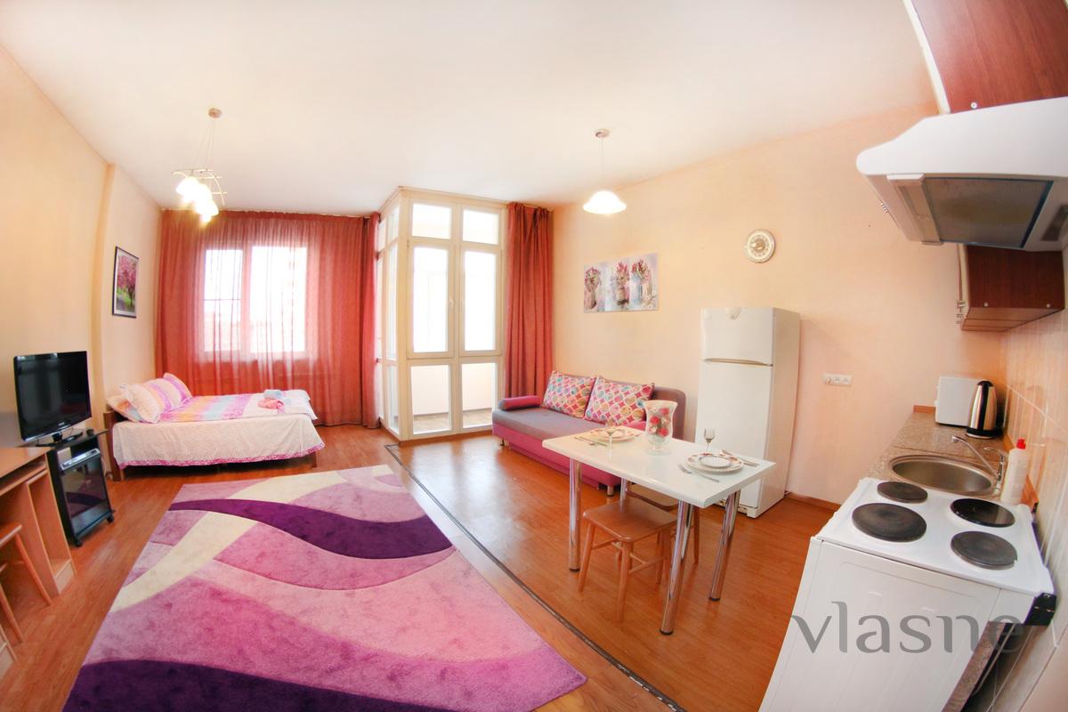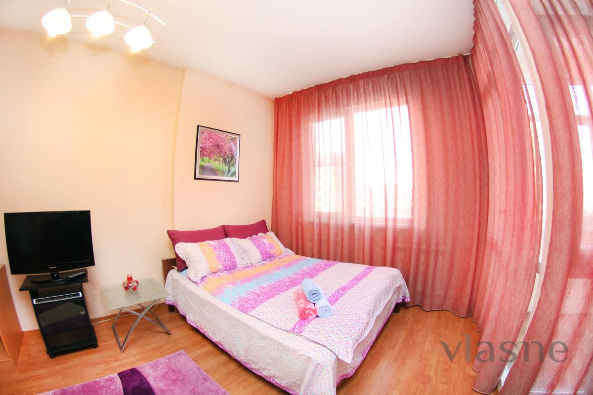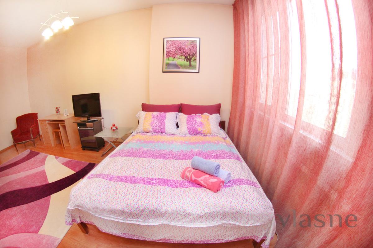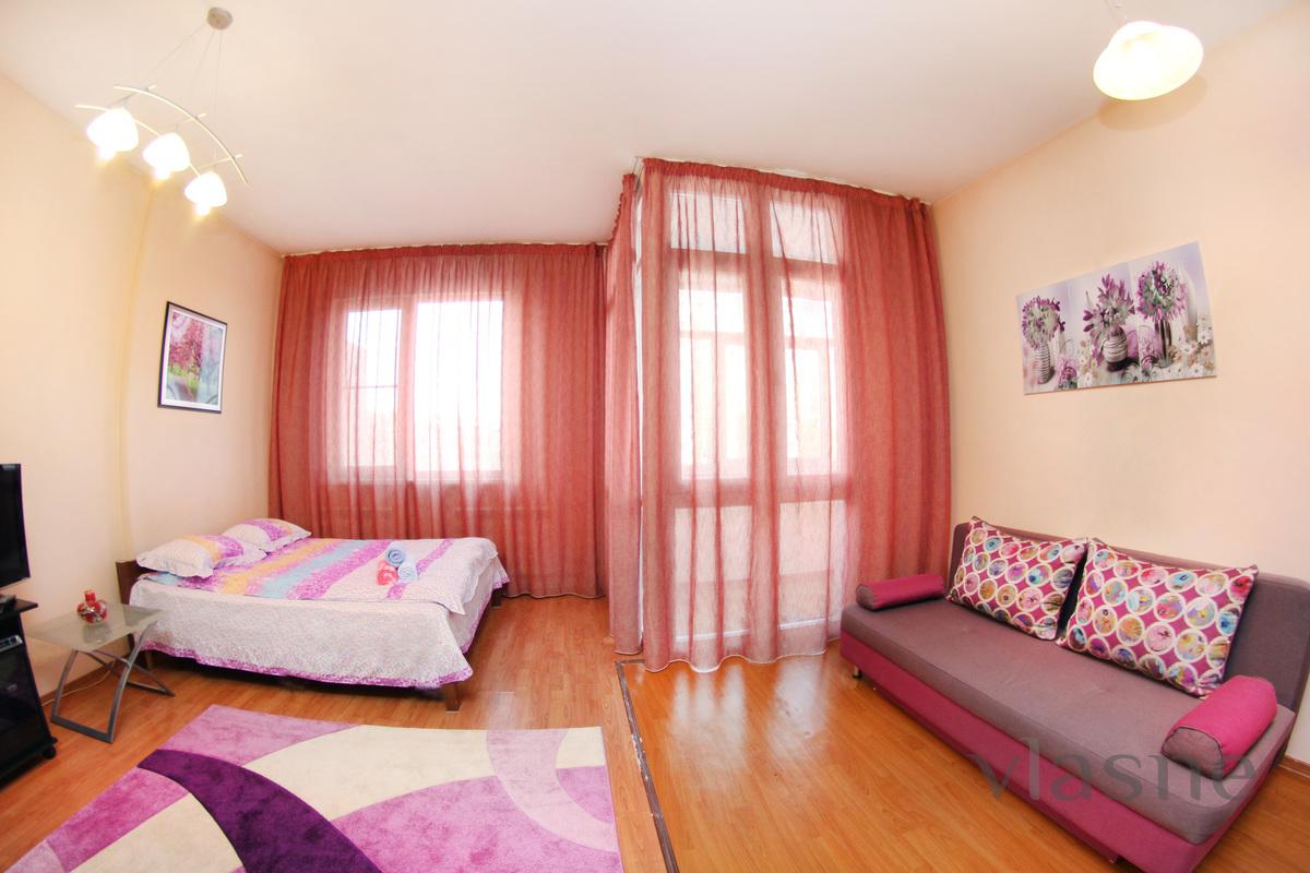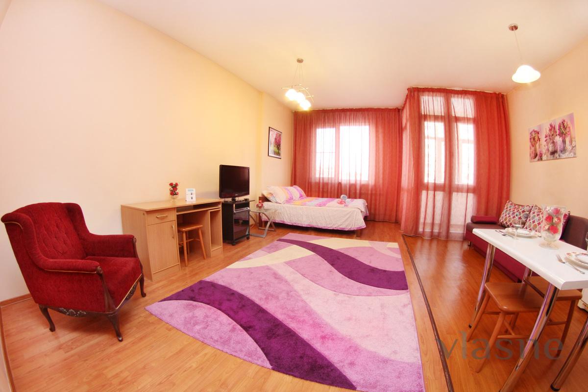 Абая. Квартира с хорошим ремонтом, пластиковые окна ЛИК, застекленный балкон, металлическая входная дверь, полностью оборудована всем необходимым для комфортного проживания: кабельное телевидение, широкополосный интернет с Wi-Fi роутером. Мягкий уголок, телевизор, рабочий стол, 2-х спальная кровать, большой плательный шкаф, кухонный гарнитур, плита с духовкой, микроволновая печь, холодильник, электрочайник, гладильная доска, утюг, сушилка для белья, посуда для приготовления пищи, столовые приборы. В ванной комнате – душевая кабина, стиральная машина, фен, одноразовые шампуни, гель для душа, полотенца, туалетные принадлежности. Количество спальных мест - 4. Квартира сдается для проживания командировочным (предоставляются все необходимые документы) и гостям «Южной столицы», не предоставляется для проведения вечеринок и прочих «шумных компаний», не сдается «на ночь» и «по часам». Курить в квартире строго запрещено, предусмотрены штрафы за курение в квартире. Минимальный срок аренды – 2 суток. Расчетное время - 12:00 час. При проживании свыше одной недели предусмотрены скидки! Предусмотрен трансфер с аэропорта и ЖД вокзала. Добро пожаловать в наш прекрасный город! С большим удовольствием будем рады встретить Вас и постараемся оставить у Вас наилучшие эмоции от проживания в нашей квартире!
