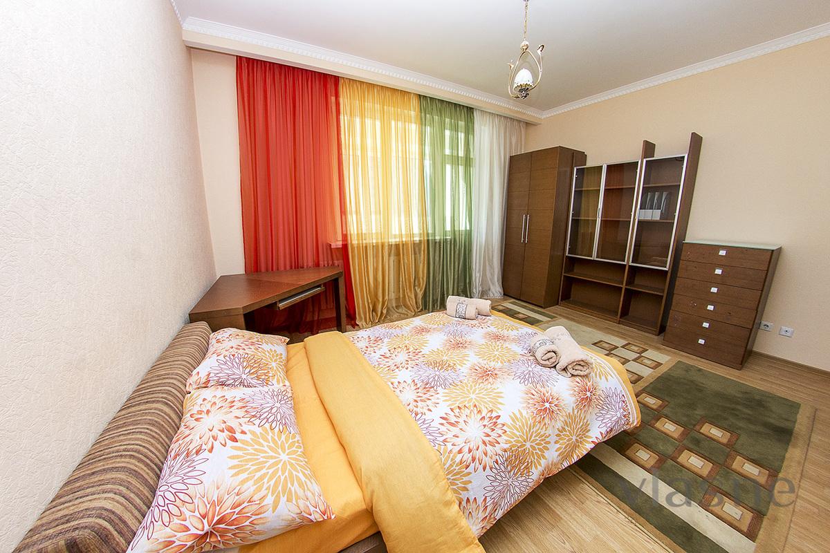 В цертре Левого берега сдается 3 комн. квартира ЖК "Нурсая", где находится Байтерек, ТРЦ Керуен, центр Корме, Казмедия центра, КТЖ, КазМунайГаза, ТРЦ Хан-шатыра, Нур-Отана, Самрук, Поющие фонтаны, Библиотека, Дом Министерств. Шикарная квартира! К Вашим услугам апартаменты с гостиничным сервисом - отглаженные пастельные принадлежности, чистые махровые полотенца, одноразовые банные комплекты.