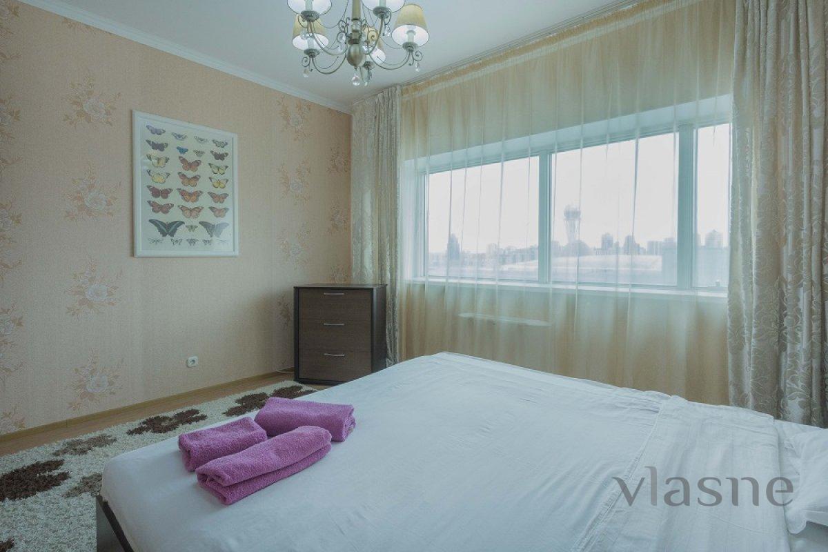 Шикарная квартира в центре Левого берега Астаны, ЖК "Северное Сияние", 8-й этаж с шикарным видом на достопримечательности столицы! Просторная, теплая, идеально чистая, уютная, светлая квартира со свежим евроремонтом! В пешей доступности находится знаменитый монумент - Байтерек, ТРЦ "Керуен", выставочный центр "Корме", Казмедия центр, КТЖ, КазМунайГаз, ТРЦ "Хан-шатыр", Нур-Отан, Самрук, Поющие фонтаны, Библиотека, Дом Министерств.