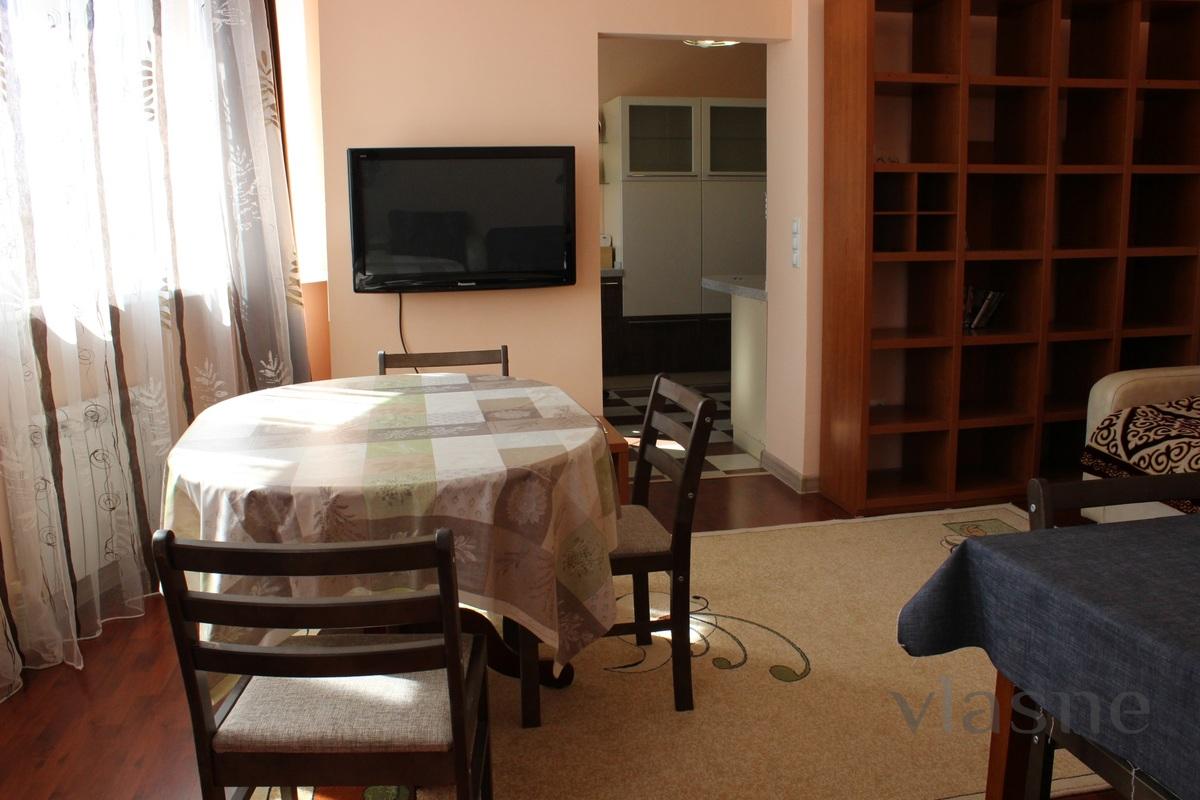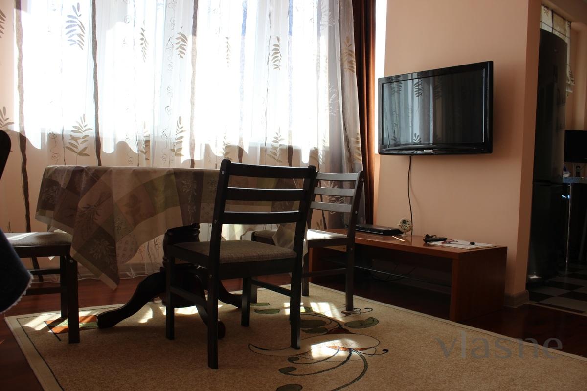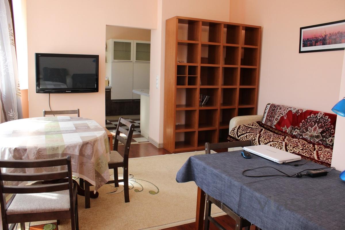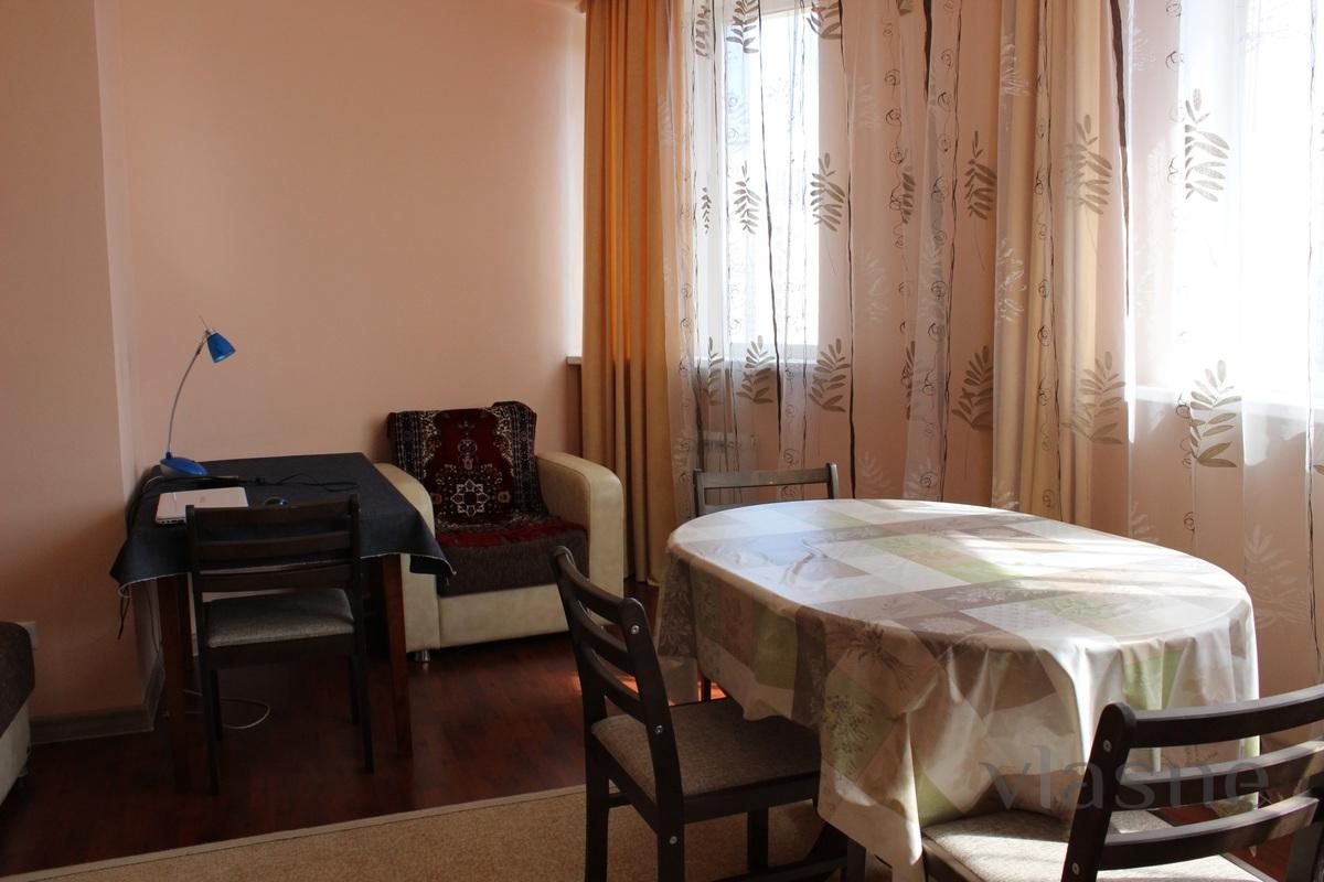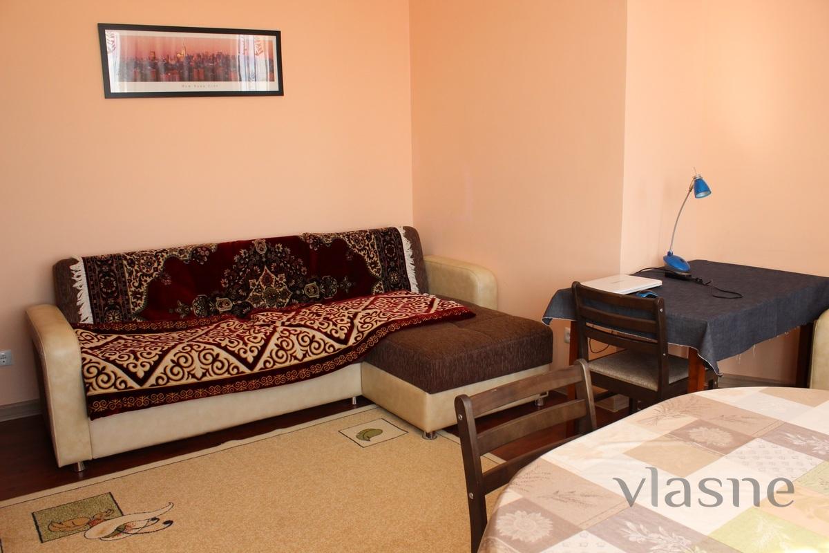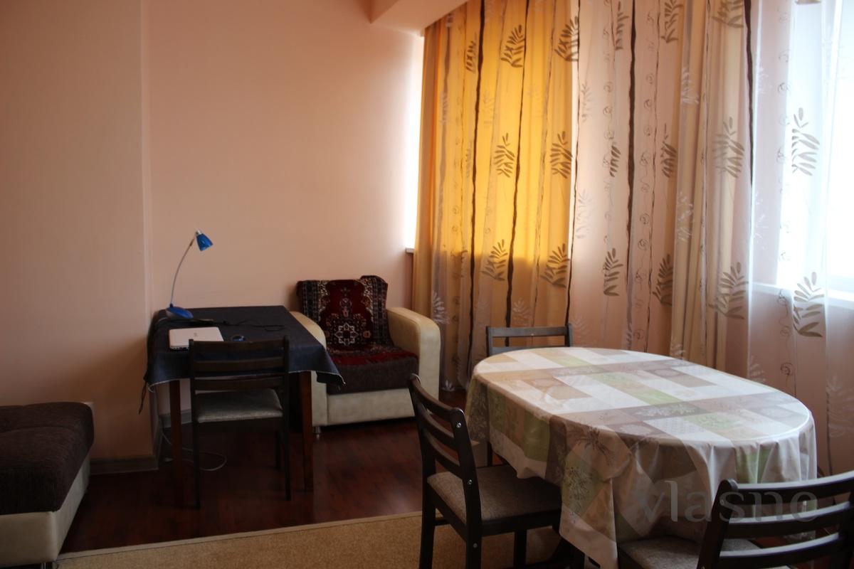 Комфортная, чистая, двухкомнатная квартира в жилом комплексе Акжайык. Спальня оснащена кроватью на двух человек. В жилом помещении имеется раздвижной диван на двух человек.