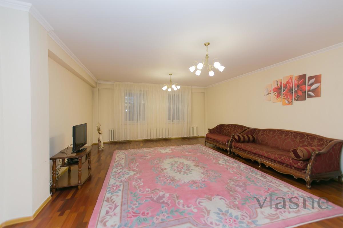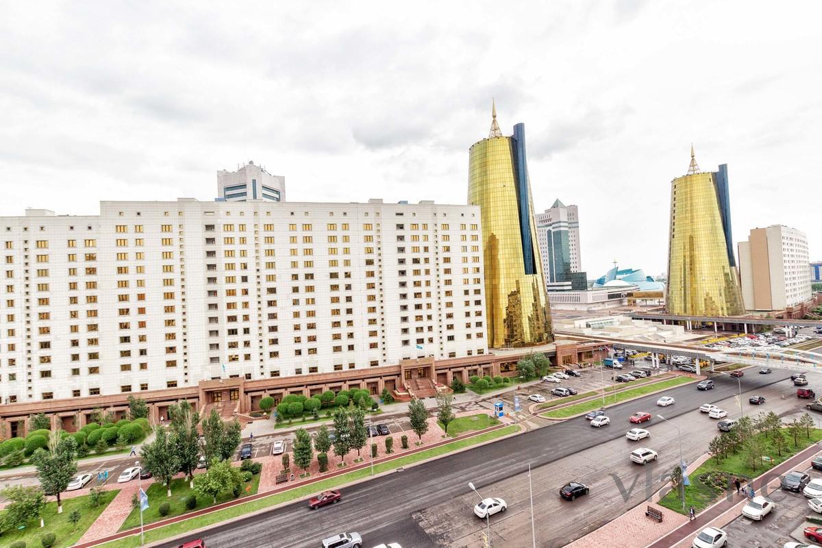 Элитная 2-х комнатная квартира находится в самом центре Астаны, на пересечении ул. Кунаева и ул. Мангилик Ел, в ЖК «Нурсая».