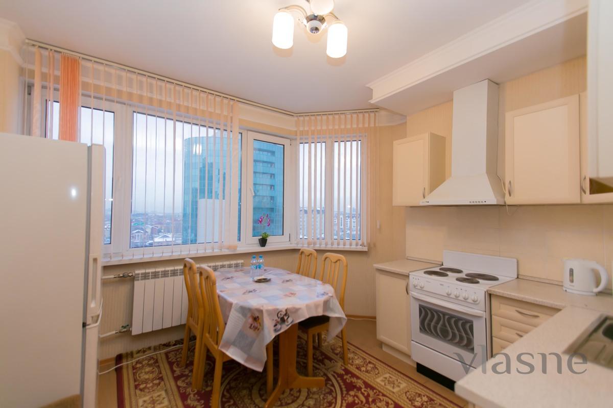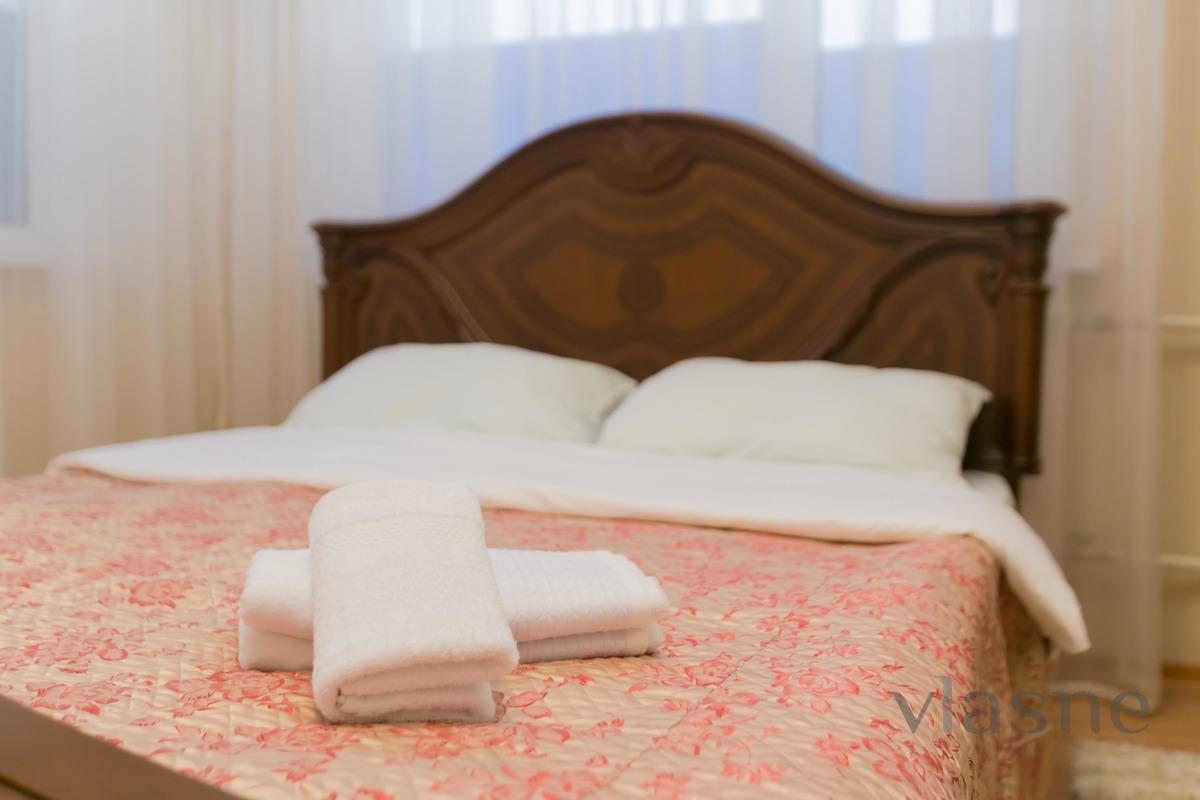 Квартира оснащена всем необходимым для комфортного проживания: телевизор с функцией Smart-TV, высокоскоростной Wi-Fi интернет, кабельное тв, холодильник, электроплита, микроволновая печь, вся посуда для приготовления и приема пищи, чистая бутилированная вода, стол на 4 человек, чистые махровые полотенца, одноразовые банные комплекты.