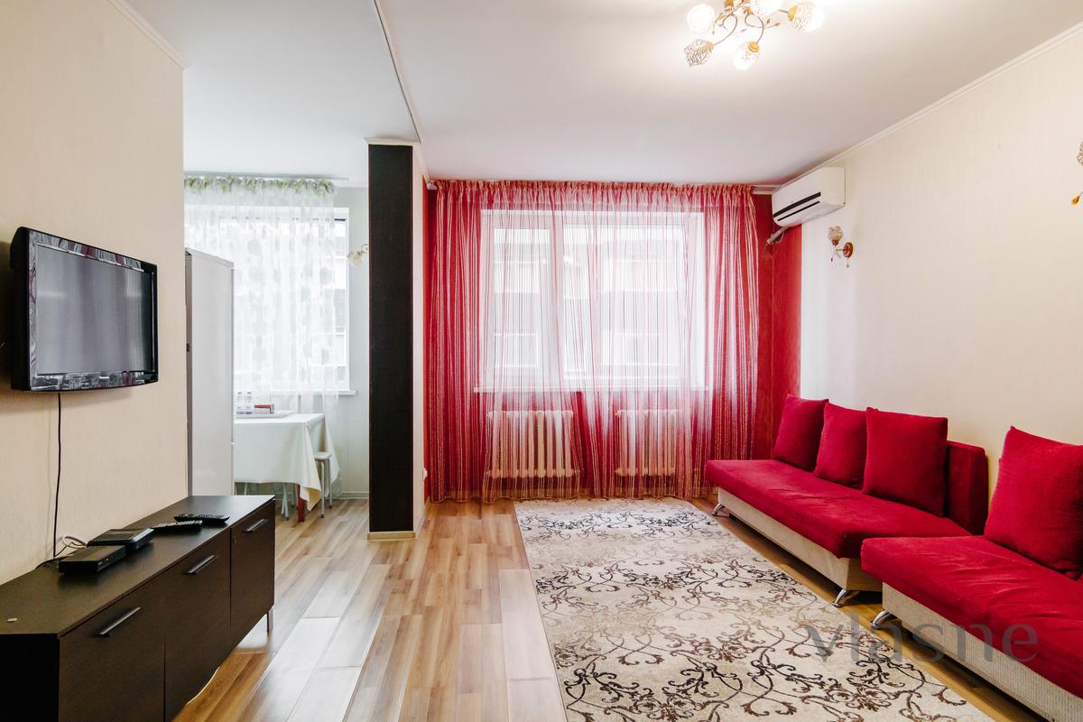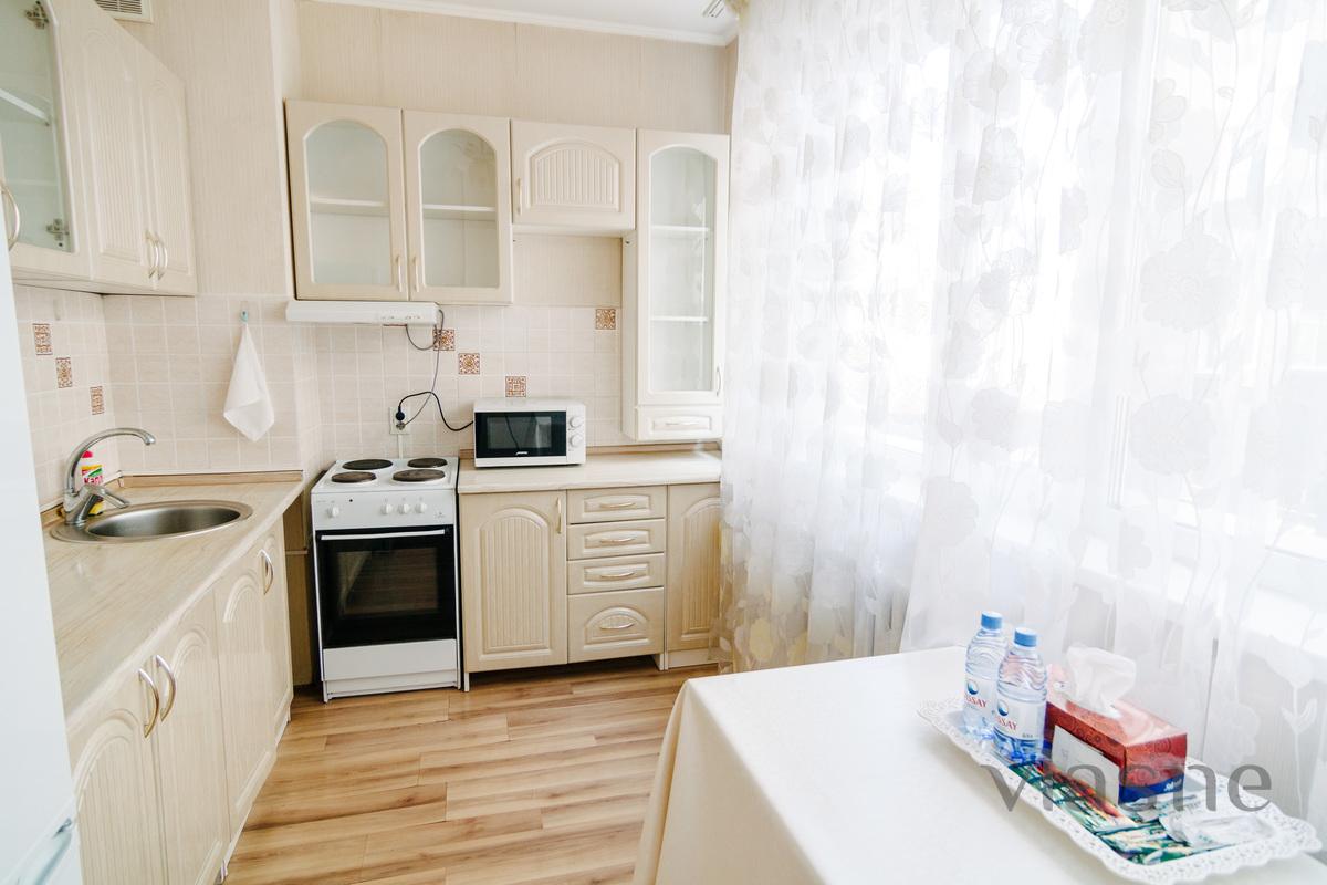В квартире есть все необходимое для комфортного проживания: стиральная машина, плита, микроволновая печь, кабельное ТВ, Кондиционер, высокоскоростной интернет, Wi-Fi, утюг, гладильная доска, фен, предметы первой необходимости, чистое постельное белье и полотенца, одноразовые тапочки, зубной набор, гель для душа, шампунь.