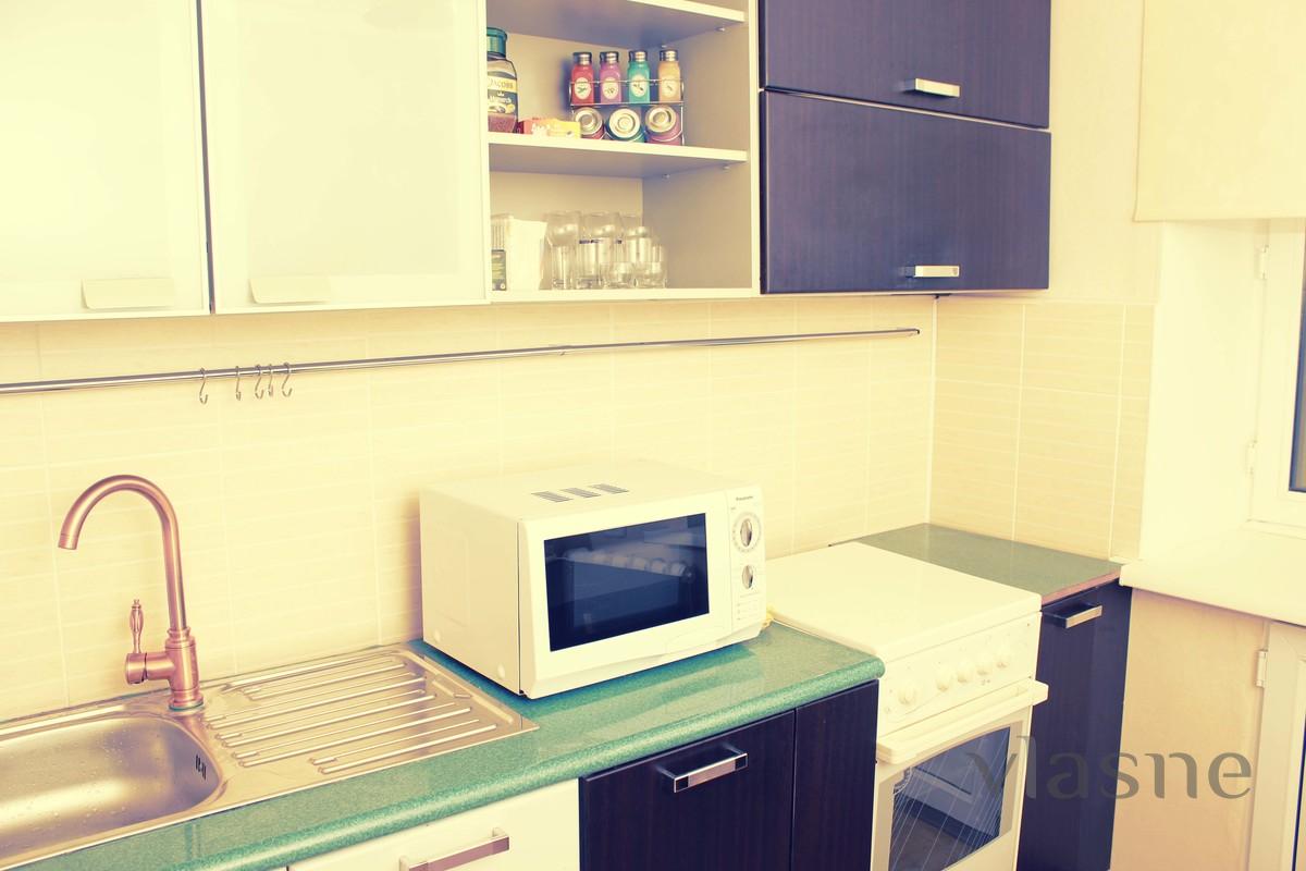 Имеется Wi-fi, евро ремонт кондиционер, титан, все условия, 2-х спальная большая и мягкая кровать, стиральная машина, холодильник, микроволновая печь, новая мебель, плазменный телевизор 140см, КабТВ не предназначена для проведения вечеринок, только парам и командировочным, не больше 2-х человек, Находится за ТД "Азат" предоставляем все необходимые документы командировочным, просьба при себе иметь удостоверение личности, при бронировании свыше 3 дней скидка