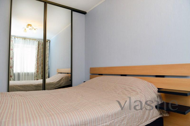 Двухкомнатная квартира посуточно в центре. Свежий евроремонт, все удобства. Новая бытовая техника. Встроенная кухня "Ardo". Безлимитный WiFi. Отличная мебель. Удобное расположение, недалеко от вокзала. Вся инфраструктура города в шаговой доступности. Кафе, рестораны, магазины, супермаркеты и т.д. Комплектация: Двухспальная кровать с гарнитуром.