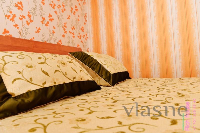 В апартаментах запрещено курение, есть балкон. Оснащение: Двухспальная кровать. Мягкий уголок 3+2+1 с возможностью трансформации в спальные места. Бытовая техника. Квартира не для корпоративов, не сдается на одни сутки, по часам и на ночь. Полный комплект отчетных документов. Командированные и гости города, добро пожаловать, в компании richhouse.kz Вы найдете лучший сервис и комфорт!
