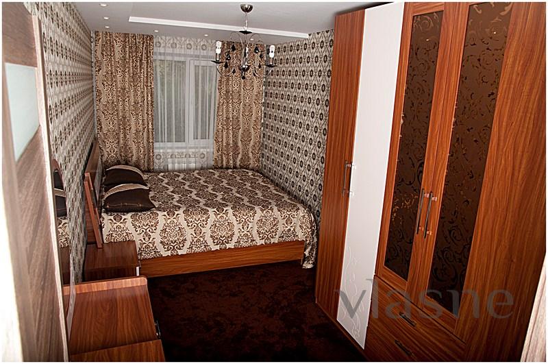 Роскошная квартира посуточно в центре города. У этой квартиры посуточно в Караганде абсолютно новый дизайнерский ремонт, итальянская кожаная мебель. Полностью вся новая бытовая техника. Wi Fi интернет. Сдается впервые. Солидным, приезжающим в город гостям. Категорически не сдается под вечеринки, на почасовую, ночь и на одни сутки.