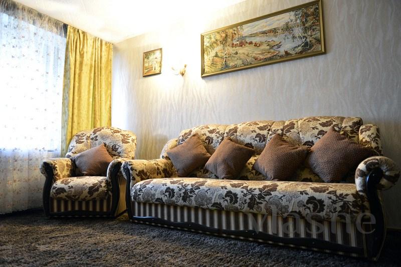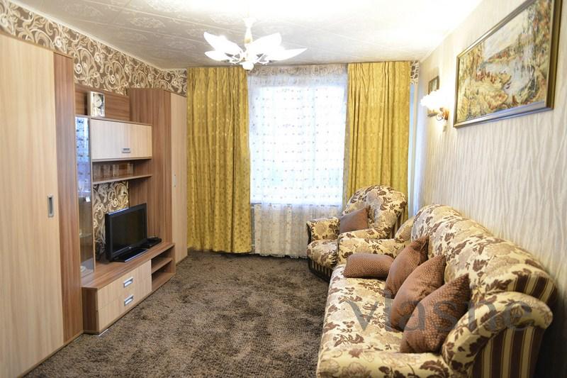 У этой квартиры посуточно в Караганде отличное расположение в центре города. Близость ко всем торгово-развлекательным объектам Караганды, а также к вокзалу. Улучшенной планировки, 2 огромные лоджии, шикарный вид на Караганду. Капитальный ремонт, новая дизайнерская мебель, вся бытовая техника, кондиционер, 2 телевизора, персональный компьютер и WI FI интернет.