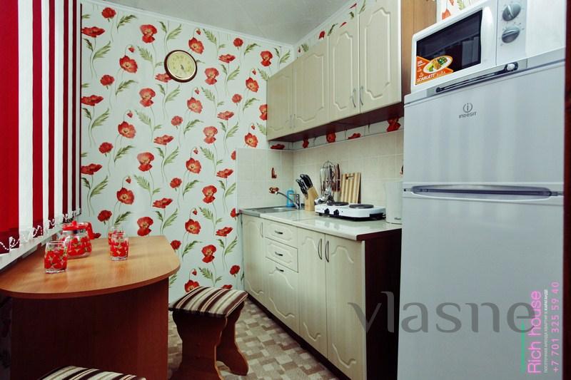 Отличный вариант аренды квартиры посуточно в Караганде, в центре города. Хороший ремонт, свежая мебель. Хороший балкон. Вся бытовая техника. Жидко-кристаллический ТВ, DVD, кондиционер, быстрый WI FI интернет, стиральная машина, микроволновая печь, чайник, фен итд. Для командированных, полный комплект документов, фискальные чеки.