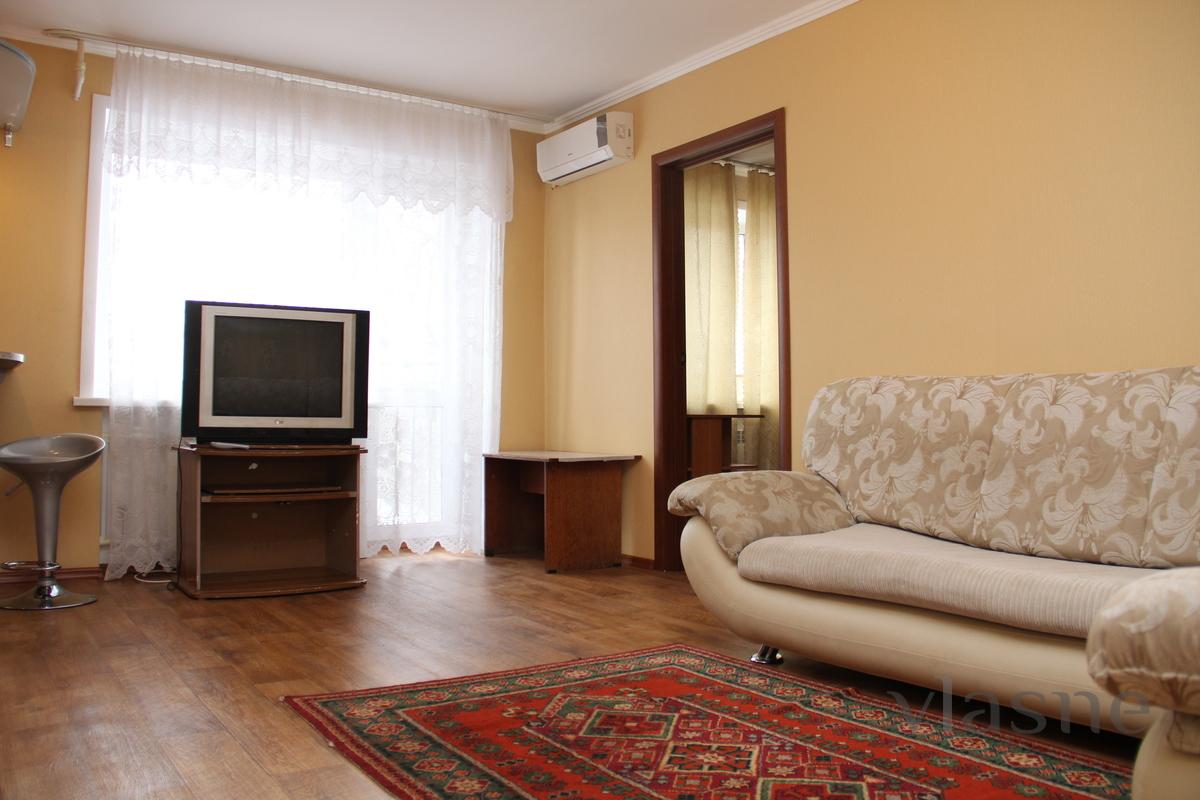 Сдам 2-ух комнатную квартиру порядочным лицам посуточно.Квартира не прокурена!Со всеми удобствами.Меблирована,вся бытовая техника.Газовая плита,микроволновая печь.Горячая,холодная вода.Кабельное телевидение,безлимитный интернет.Чистый комплект постельного белья,разовые принадлежности.Квартира всегда в чистом и ухоженном состоянии.Не сдаётся шумным компаниям.Командировочным по необходимости предоставляются документы.