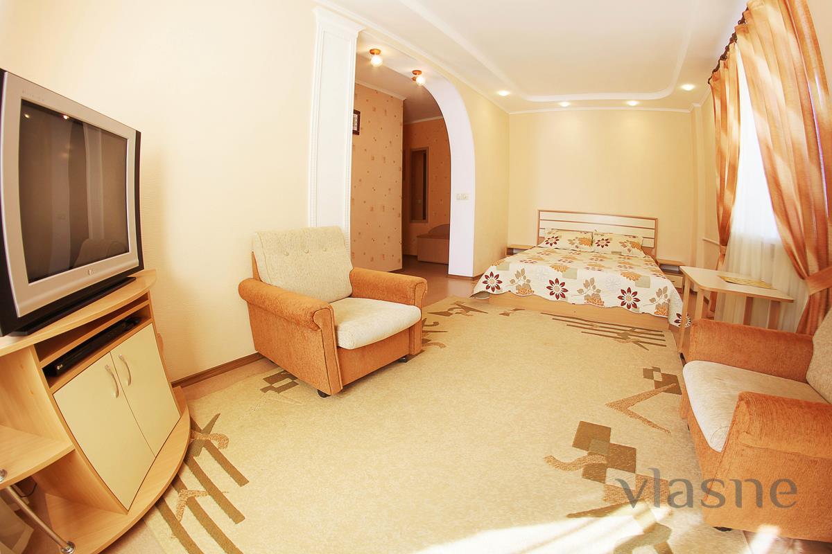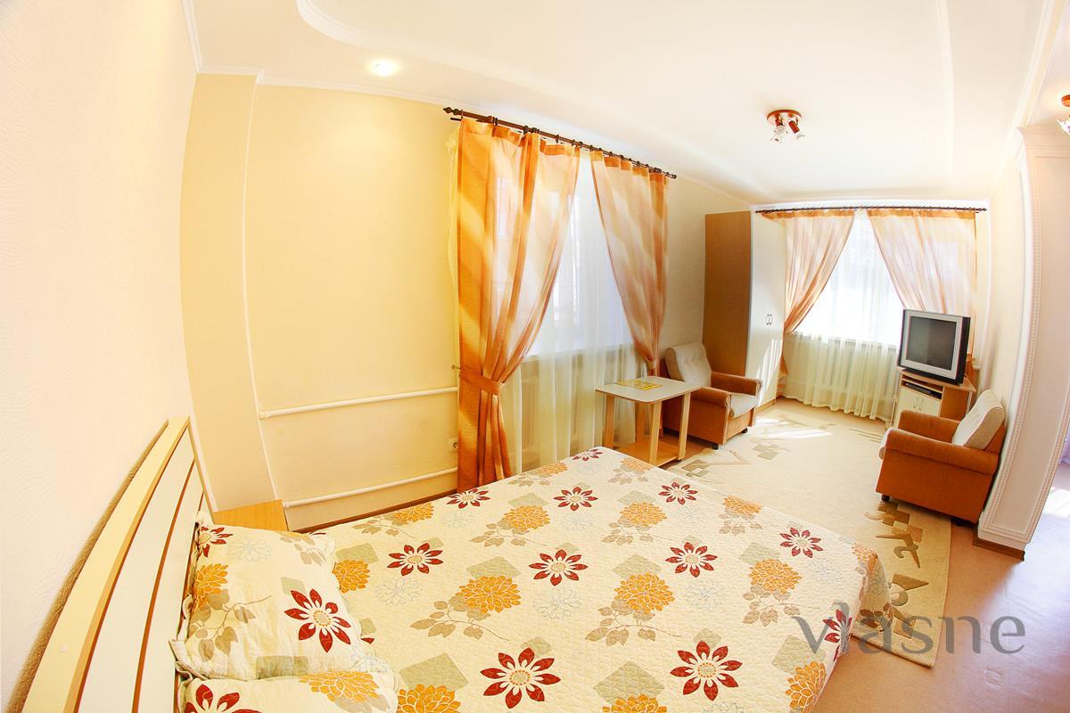 Все удобства: тихий двор, охраняемая стоянка, кабельное телевидение, wi-fi (интернет), телефон, титан, холодильник, микроволновая печь, стиральная машина и т.д. Полностью меблирована.
