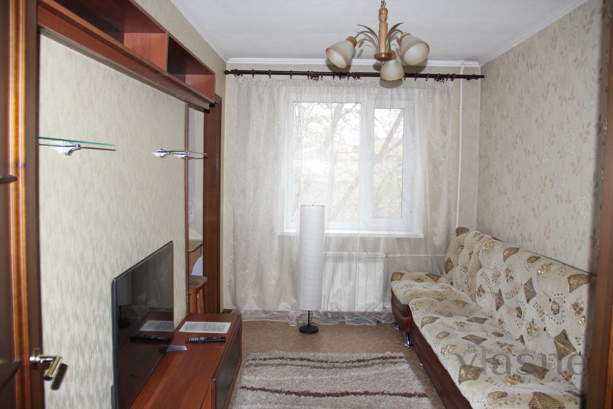 Сдам 2-комнатную квартиру со всеми удобствами для комфортного проживания.В шаговой доступности кафе,супермаркеты,салон красоты,банк.Квартира не прокурена!Меблирована:большая кровать,раскладной диван.СМАРТ-телевидение с кабельным телевидением более 60 каналов,wi-fi internet.Горячая,холодная вода.Есть титан.Чистый комплект постельного белья.Командировочным предоставляются документы.Не сдаётся шумным компаниям.Квартира всегда чистая и убранная!