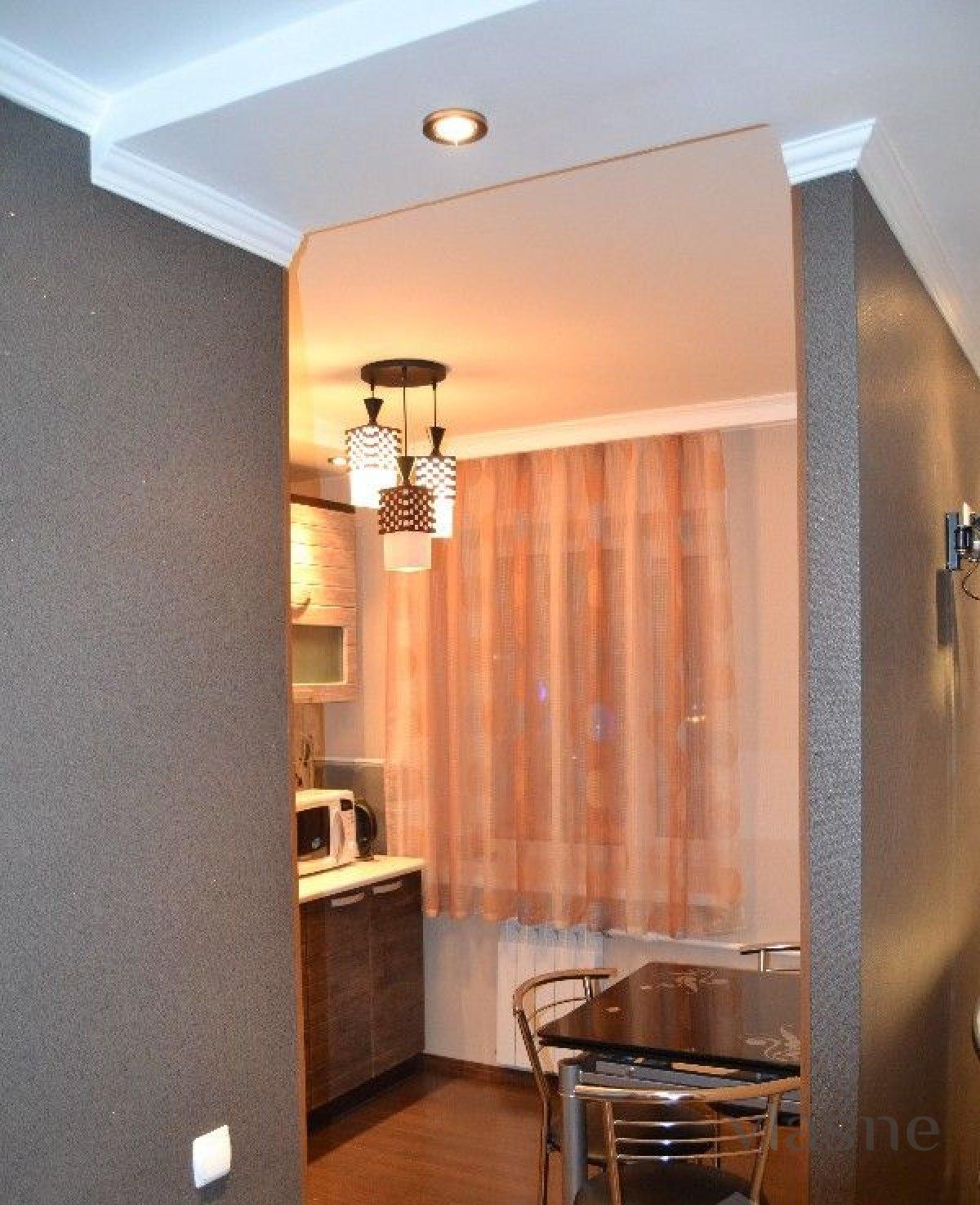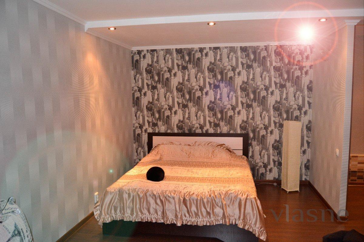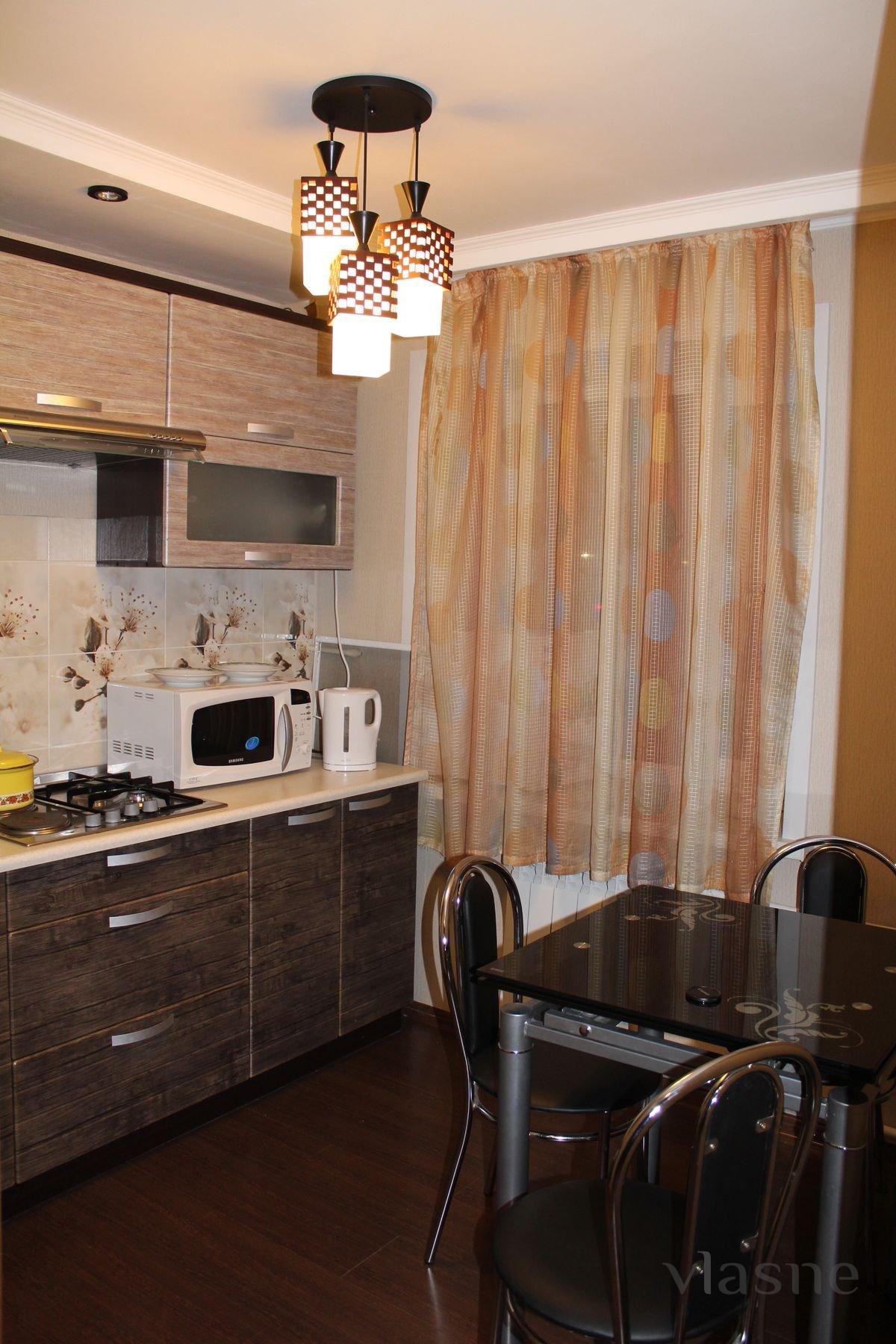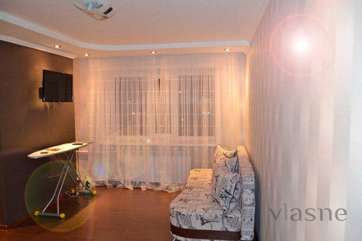 Свежий евроремонт. Плазма-TV. Чистая Люкс квартира расположена в центре города справа от боулинга "Арман". В квартире есть все необходимое для проживания до двух человек, каб. ТВ, кровать двуспалка, диван, мебель, титан, полностью укомплектованные кухня и ванна. Развитая инфраструктура: рядом с домом платная автостоянка, Мед.