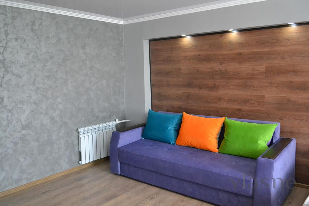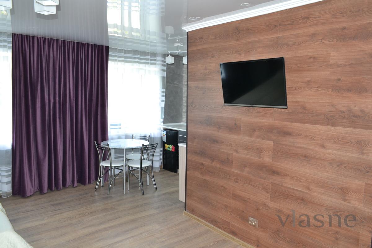 Хай-Тек студия в центре (р-н Боулинга- Юбилейного магазина) после ремонта. Фото 100%. Чистая, уютная со всеми удобствами: большая мягкая 2х спальная кровать, раскладной диван, свежее постельное бельё, Smart-tv, Wi-Fi, вся бытовая техника, кабельное ТВ, титан. Полностью укомплектованные кухня и ванна.